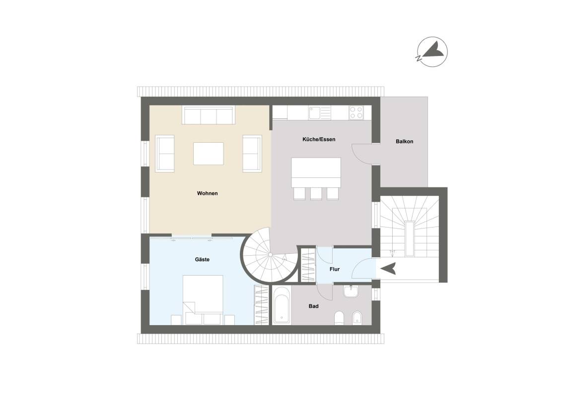 Details zur Wohnung 2 ( Maisonette Ferienwohnung, zweites OG und Spitzboden)