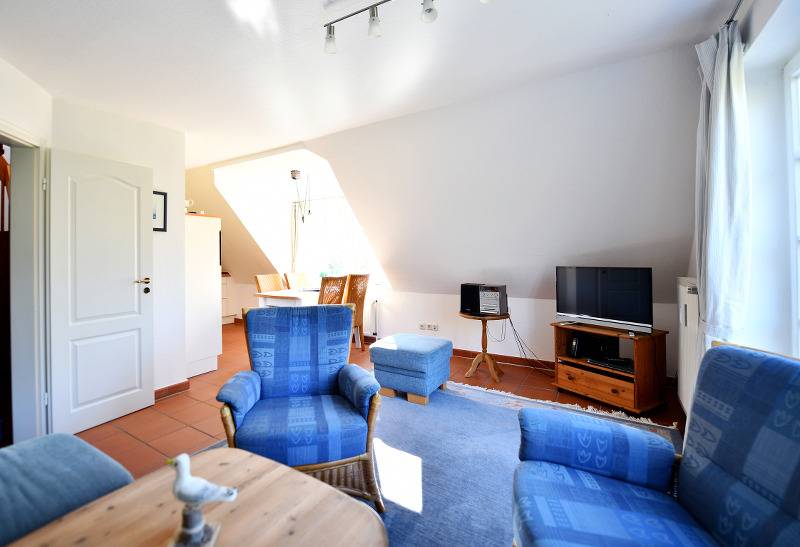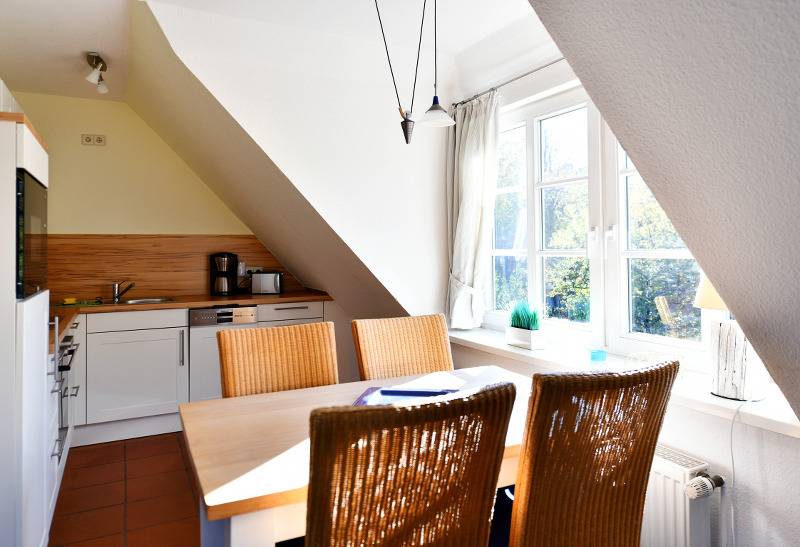 Die Oberschosswohnung Nr. 3 bietet Platz für zwei bis vier Personen. Ein großzügiges und helles Wohnzimmer mit bequemen Ecksofa, ein Essplatz sowie eine moderne Küchenecke lassen keine Wünsche offen. [nbsp]Ein Schlafzimmer mit Doppelbett sowie ein Duschbad mit Fenster gehören ebenfalls zur Wohnung. Die Wohnung verfügt über einen großzügigem Spitzboden. Hier ist auch eine zusätzliche Toilette.