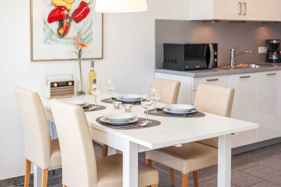 Ein großzügiger Essplatz für 4 Personen lädt zum Essen und Verweilen ein.