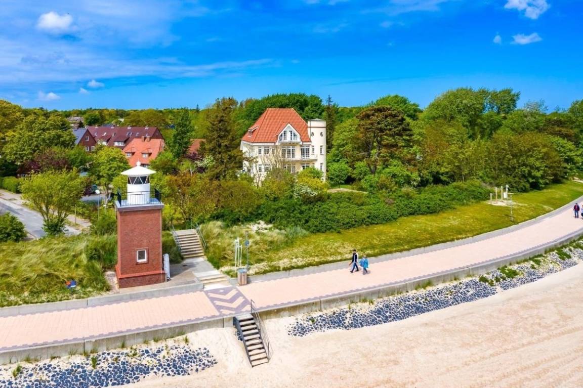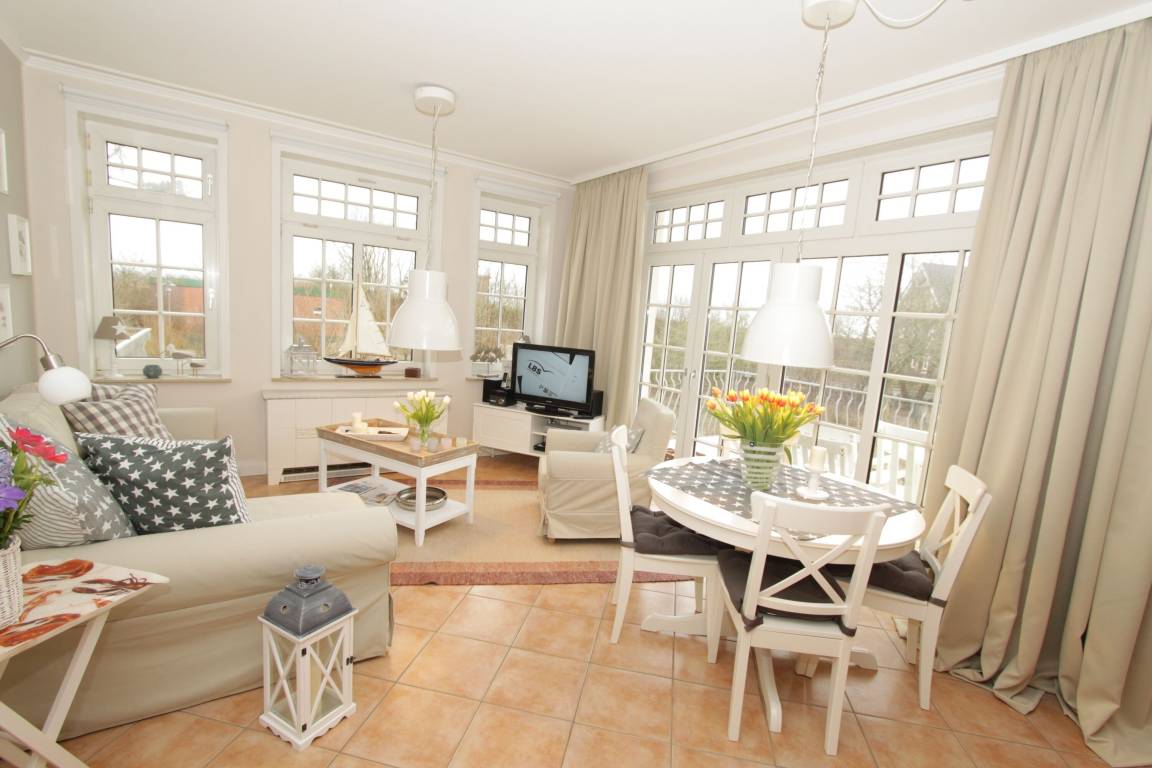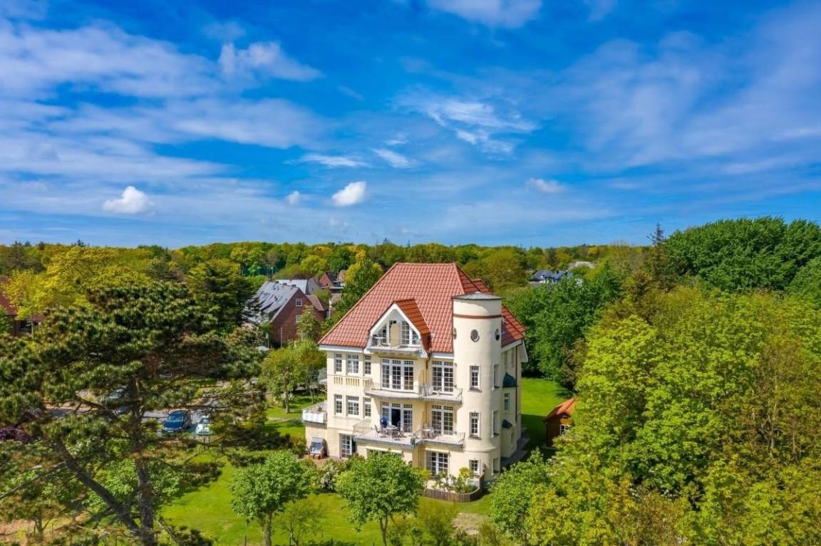 Die herrliche Jugendstilvilla liegt absolut ruhig direkt am Südstrand von Wyk. Die Wohnung befindet sich hinter dem Leuchtturm, nah am AquaFöhr und nah zur Sandwall-Promenade in Wyk. Die kurzen Entfernungen sind ideal für einen spontanen Aufbruch zu einer Strand- und Wattwanderung oder auch Ausflügen zu den Inseldörfern mit dem Fahrrad. Einen herrlichen Blick ins Grüne genießen Sie von dem großen Südwest-Balkon (8 m²) der im 1. OG liegenden Wohnung. Auf dem Balkon befindet sich ein Tisch mit Balkonmöbeln. Dort können Sie die Sonne bis in die Abendstunden erleben und das Nordseeklima bei einem Tee oder spannenden Buch genießen.[nbsp] Durch die große Fensterfront zu zwei Seiten ist die Wohnung besonders hell und sonnig - hier fühlen Sie sich zu jeder Jahreszeit wohl. Zum Strand sind es nur wenige Schritte, dort steht unseren Gästen ein Strandkorb während der Saison (Mai - Oktober) kostenfrei zur Verfügung. Die Wohnung ist gemütlich, modern und hochwertig eingerichtet, vom Waffeleisen über regionale Teeauswahl bis zum modernen Smart-TV ist alles für Ihren angenehmen Aufenthalt vorhanden.