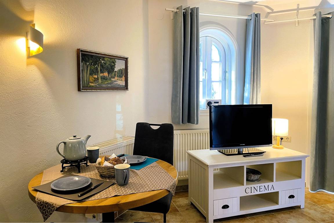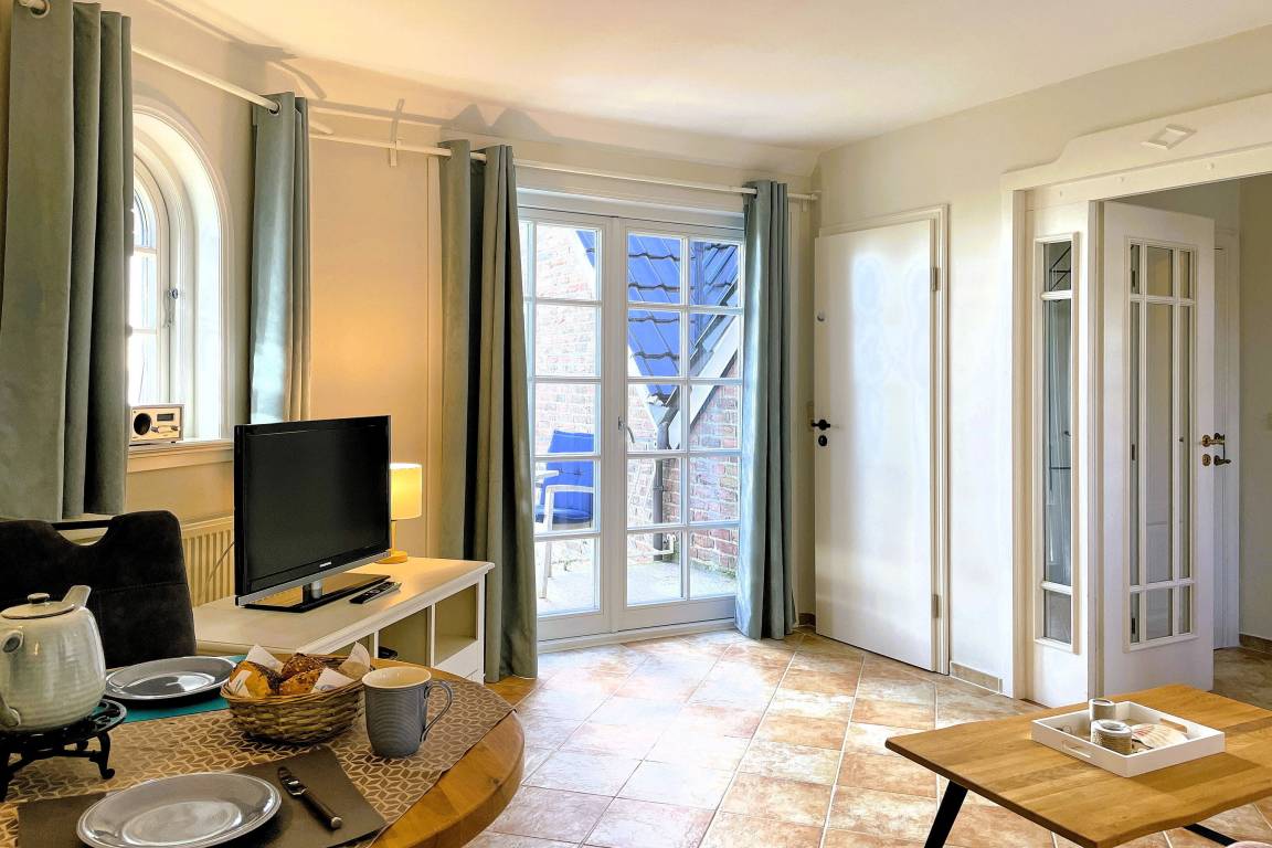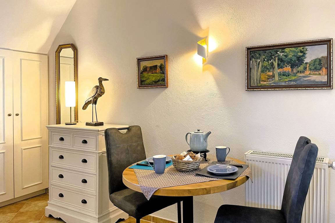 Die Ferienwohnung "Halligenblick" bietet Ihnen einen komfortablen Aufenthalt mit atemberaubendem Meerblick. Diese charmante Unterkunft verfügt über zwei Zimmer und ist perfekt für Paare oder Alleinreisende, die eine erholsame Zeit an der Nordsee verbringen möchten. Im gemütlichen Wohnzimmer finden Sie ein bequemes Schlafsofa (160x200) für eine zusätzliche Person, großzügige Wandschränke für Ihre Habseligkeiten und einen Essbereich mit Tisch und Stühlen. Die abgegrenzte Küchenzeile ist kompakt, aber zweckmäßig ausgestattet. Hier stehen Ihnen ein Induktionskochfeld mit zwei Platten, eine Filterkaffeemaschine, ein Wasserkocher, ein Toaster und ein Kühlschrank zur Verfügung. Geschirr, Besteck und Kochutensilien sind ebenfalls vorhanden.