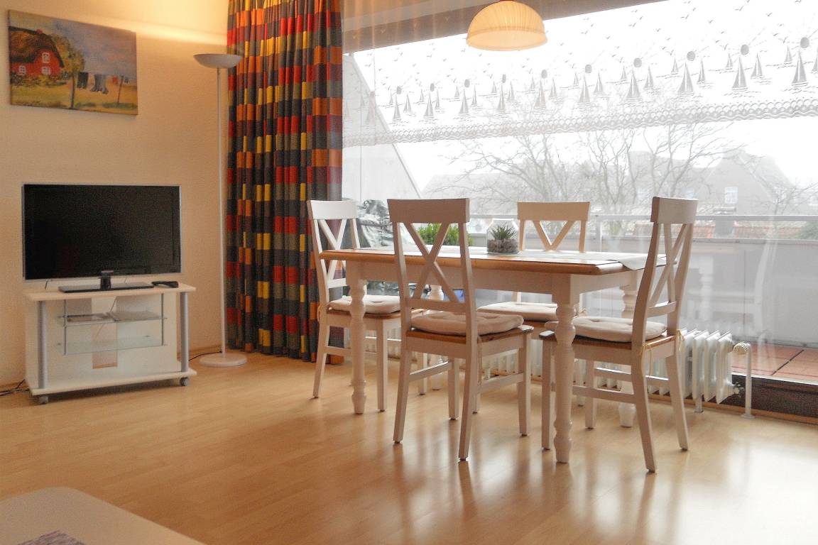 Einladend und in bester Lage bietet sich hier unsere Wohnung 7 ideal für 2 Personen als Urlaubsdomizil auf Föhr an. Sie sind mitten in der kleinen Wyker Innenstadt und natürlich ganz nah am Strand und dem Meer. Genießen Sie entspannte Stunden in unserer Wohnung "Große Straße Wohnung 7" nach oder vor einem erlebnisreichen Urlaubstag. Die Wohnung befindet sich im zweiten OG und bietet Dank des Panoramafensters im Wohnzimmers und Dank des großen Balkons einen herrlichen Ausblick über die Dächer und das Leben von Wyk. Mit viel Liebe wird die Wohnung gepflegt und die gute Ausstattung lässt keine Wünsche offen. Das gemütliche Schlafzimmer mit Doppelbett mit verstellbaren Lattenrosten, gelegen zur großen Straße, verfügt über einen geräumigen Kleiderschrank, das funktionale Bad mit Dusche, WC und Waschbecken ist hell gefliest und der großzügige Wohn- und Essbereich ist modern und geschmackvoll gestaltet. Die Küchenzeile ist klein, aber fein und verfügt über eine Mikrowelle, einen Kühlschrank mit Gefrierfach, Backofen mit Ceranfeld und einen Geschirrspüler. Der Tag startet bereits fantastisch, wenn Sie bereits morgens auf dem großen 5 m breiten Südbalkon ihr Frühstück genießen können und die frische Nordseeluft einatmen.. Schauen Sie also am Besten gleich nach, ob Ihr Wunschtermin noch frei verfügbar ist und wir erstellen Ihnen gerne ein unverbindliches Angebot.