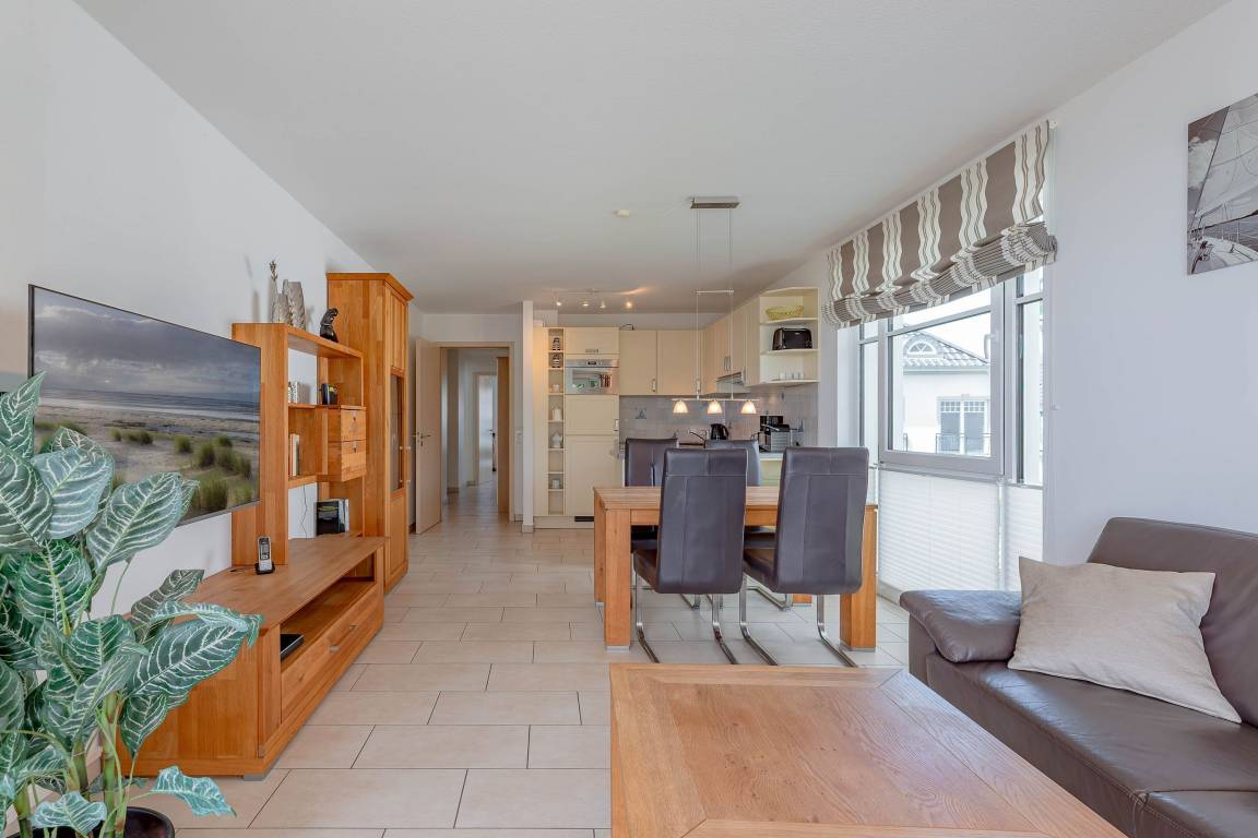 Wir begrüßen Sie im "Schloss am Meer", der exklusiven Wohnanlage direkt am Wyker Südstrand gelegen. Ihre Wohnung liegt im 1.Obergeschoss. Hier haben Sie einen Südost-Balkon ganz für sich allein und einen Blick auf die Nordsee und die Halligen. Dieser einzigartige Panoramablick ist unvergesslich. In nur wenigen Schritten befinden Sie sich auf der Promenade, die Sie ins Herz von Wyk führt. Hier laden Geschäfte zum Bummeln ein, Cafés und Restaurants verwöhnen Sie mit kulinarischen Köstlichkeiten.