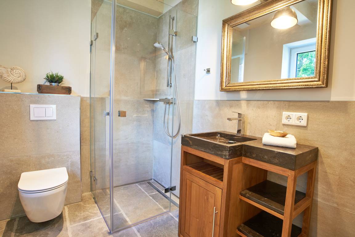 Die DHH ist ca. 110 qm groß und bietet 4 Schlafzimmer für insgesamt 6 Personen. Zwei helle freundliche Badezimmer mit Duschbereich sorgen dafür, dass es am Morgen nicht zu Wartezeiten kommt. Im gemütlich eingerichteten Wohn- Esszimmer befindet sich die modern eingerichtete Küche in der sie alles finden, was für einen gelungenen Urlaub nötig ist. Ein Mylinkachelofen, der mit Bioethanol befeuert wird, gehört ebenfalls zur Ausstattung des Wohnzimmers. Von der Küche aus haben Sie Zugang zur Terrasse. Zur Küche gehört ein Hauswirtschaftsraum mit Waschmaschine und Trockner. Im 1. Obergeschoss befinden sich drei Schlafzimmer (1 x Doppelbett, 2 x Einzelbett und 1 x Einzelbett) sowie das große Badezimmer. Das zweite Badezimmer ist im Erdgeschoss, in dem sich ein weiteres Schlafzimmer mit Einzelbett befindet. Im Dachgeschoss befindet sich eine Sauna für die kalten Tage. Dieses Haus ist somit gerade für große Familien gut geeignet. Ein PKW-Stellplatz befindet sich direkt am Haus.