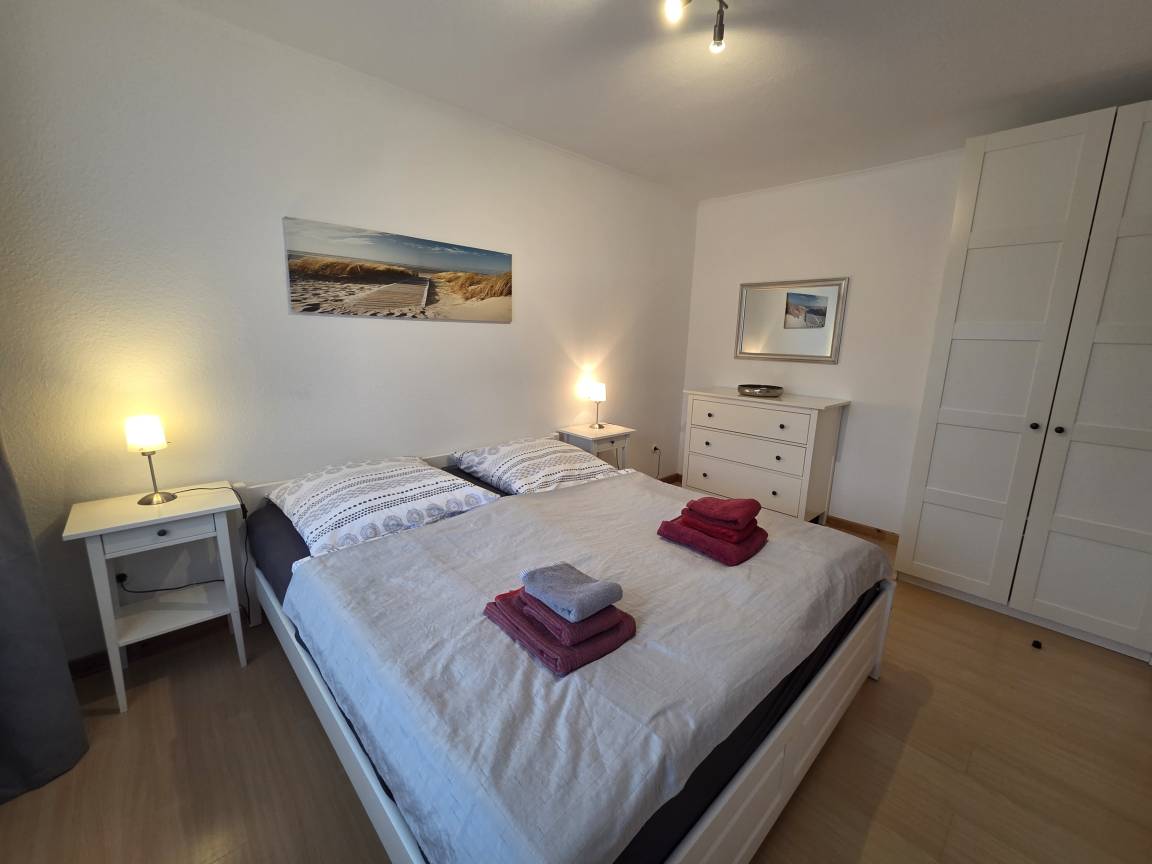 Das Schlafzimmer ist mit einem Doppelbett (1,80 × 2,00 m) sowie einem Kleiderschrank ausgestattet.