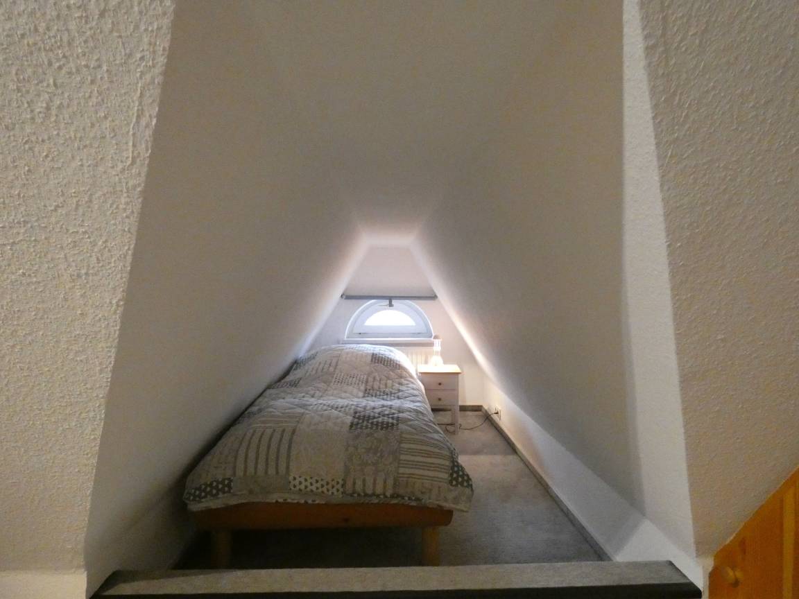 Das Schlafzimmer ist mit einem Doppelbett (1,80 × 2,00 m, offenes Fußende) sowie einem Kleiderschrank ausgestattet und sorgt für erholsame Nächte. Für Familien stehen ein Kinderbett und ein Hochstuhl kostenfrei zur Verfügung.