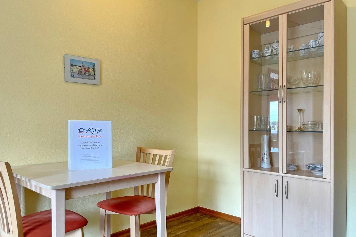 Im zweiten Obergeschoss befindet sich unsere hübsch eingerichtete Altastadtwohnung 4 auf 50 qm. Hier erwartet Sie ein gemütliches Domizil mit einem Wohnzimmer, welches über einen Flachbild-TV, WLAN, eine gemütliche Sitzgruppe und eine gut ausgestattete Küchenzeile verfügt und dabei hell und geräumig ist. Das Bad mit Dusche ist funktional und im separaten Schlafzimmer mit Doppelbett erleben Sie herrliche Träume. Von der Wohnung aus betreten Sie den Balkon, der zur Zeit noch gemeinschaftlich mit der Wohnung 5 genutzt wird. (Ein Sichtschutz ist für die Sommersaison 2021 in Planung). Von hier aus blicken Sie über die Dächer der Wyker Altstadt. Die Wohnung eignet sich ideal für 2 Personen, die gerne mitten im Geschehen Ihren Urlaub verbringen möchten und den Strand fußläufig in wenigen Minuten erreichen möchten.