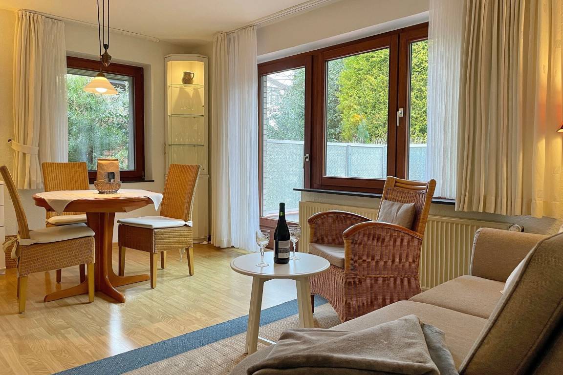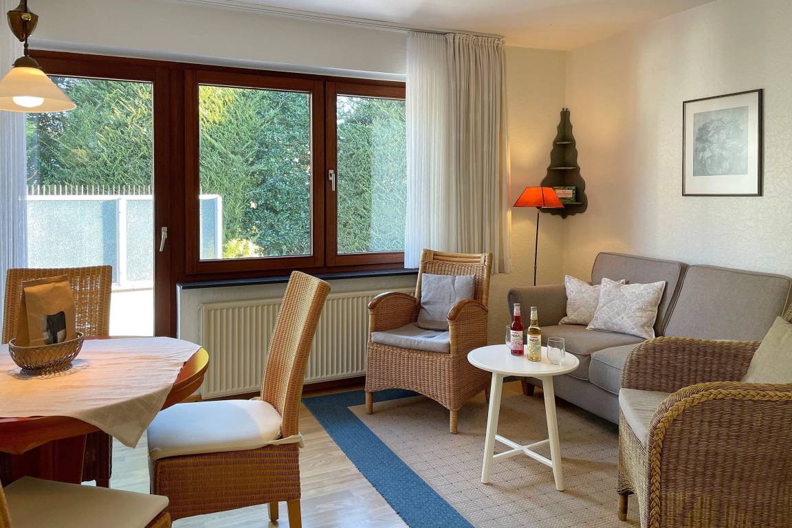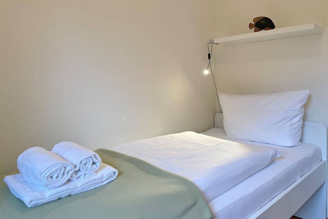 Inmitten von Wyk und nur ein paar Schritte vom Meer entfernt, erwartet Sie unser charmanter Bungalow "Ferienhaus Timm" für bis zu drei Personen. In traumhafter Lage, ruhig im Grünen und dennoch mitten in der Fußgängerzone, erwartet Sie auf rund 60 m² ein liebevoll eingerichtetes Zuhause auf Zeit – ideal für 1–3 Personen. Das Ferienhaus Timm liegt leicht erhöht, zum Hauseingang führen vier Treppenstufen. Alle Räume befinden sich auf einer Ebene, was das Haus besonders praktisch und gemütlich macht. Vom Flur aus erreichen Sie in das Bad mit Dusche, ein separates WC, die voll ausgestattete Küche sowie den hellen Wohnbereich mit bequemer Sitzecke und Esstisch. Vom Wohnraum führt die Tür direkt in das erste Schlafzimmer mit Doppelbett und Zugang zur eigenen, sichtgeschützten Terrasse – perfekt für erholsame Stunden im Freien. Das zweite Schlafzimmer, ideal für eine dritte Person, schließt direkt an die Küche an. Die zum Haus gehörende Terrasse, gelegen in einem schönen Garten, eignet sich wunderbar als kleine entspannte Oase der Ruhe. Ein überdachter Fahrradstellplatz befindet sich direkt am Haus, und ein öffentlicher Parkplatz ist nur wenige Gehminuten entfernt. Für die An- und Abreise dürfen Sie selbstverständlich bis vor das Haus fahren Dieses Ferienhaus ist ideal für 1–3 Personen, die sich entspannte Urlaubstage in zentraler Lage inmitten der Wyker Innenstadt wünschen und gleichzeitig die Vorzüge der ruhigen zweiten Reihe zum Relaxen genießen möchten.