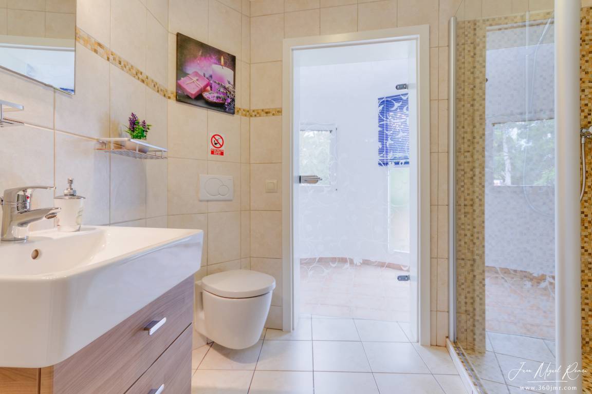 Jedes Haus hat einen separaten Eingang und individuelle Terrassen. Der schöne Salzpool mit solarbetriebener Poolheizung auf der untersten Ebene wird nur von diesen 6 Unterkünften genutzt. In einem dieser Häuser wohnt der Hausmeister, der die Gäste empfängt und die Gartenanlage sowie den Pool pflegt. Sie haben auch die Möglichkeit Ihr Elektroauto am Haus aufzuladen. Die Anlage liegt an einer Privatstraße und ist absolut ruhig. Am Wochenende kann man die vorbeifahrenden Yachten beobachten. Auf dem Weg nach unten, in Richtung Javea, liegen viele interessante Restaurants, und in Javea mit seinem schönen Strand stehen Ihnen viele kulinarische sowie kulturelle Möglichkeiten zur Verfügung.