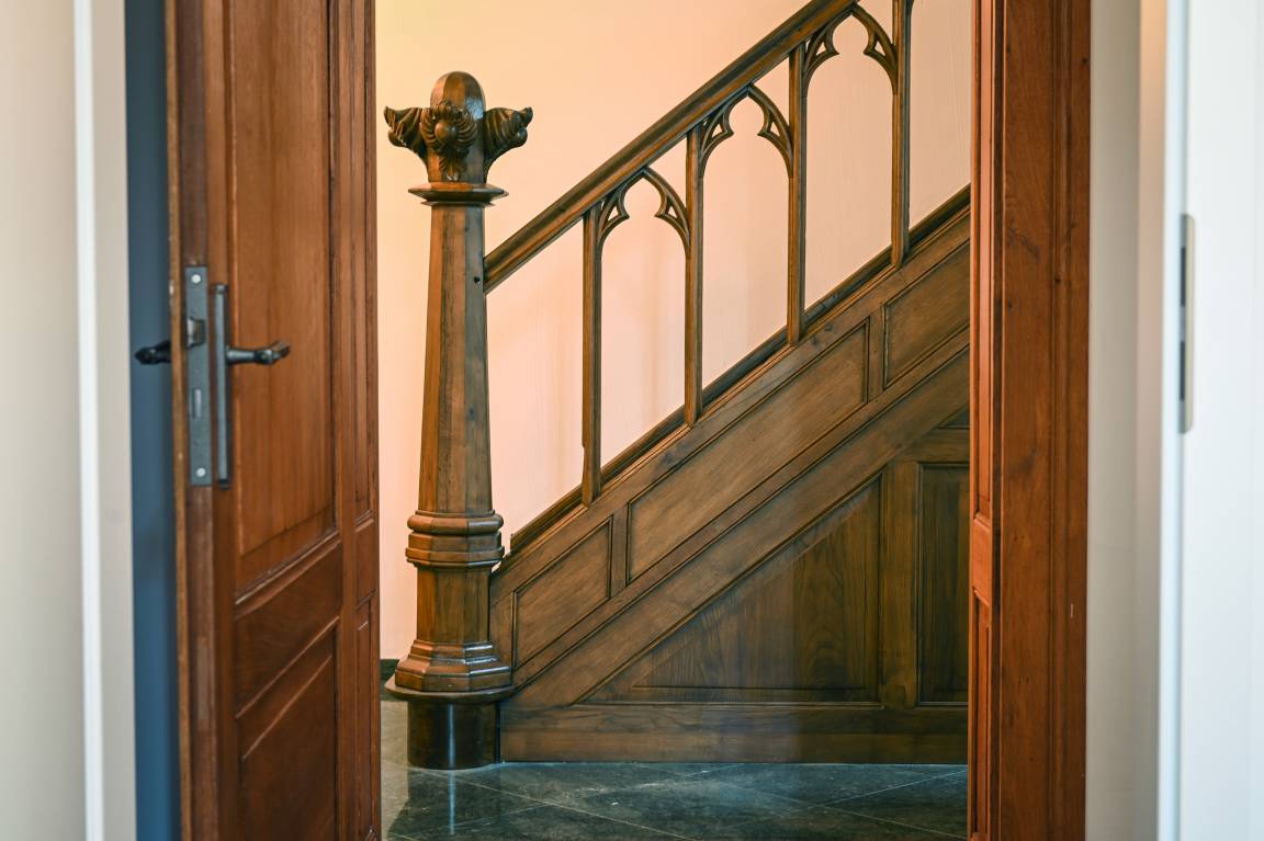 Das unter Denkmalschutz stehende Herrenhaus befindet sich geographisch zwischen Innenstadt und dem Rhein.