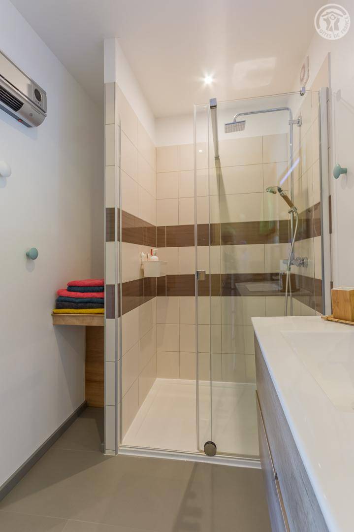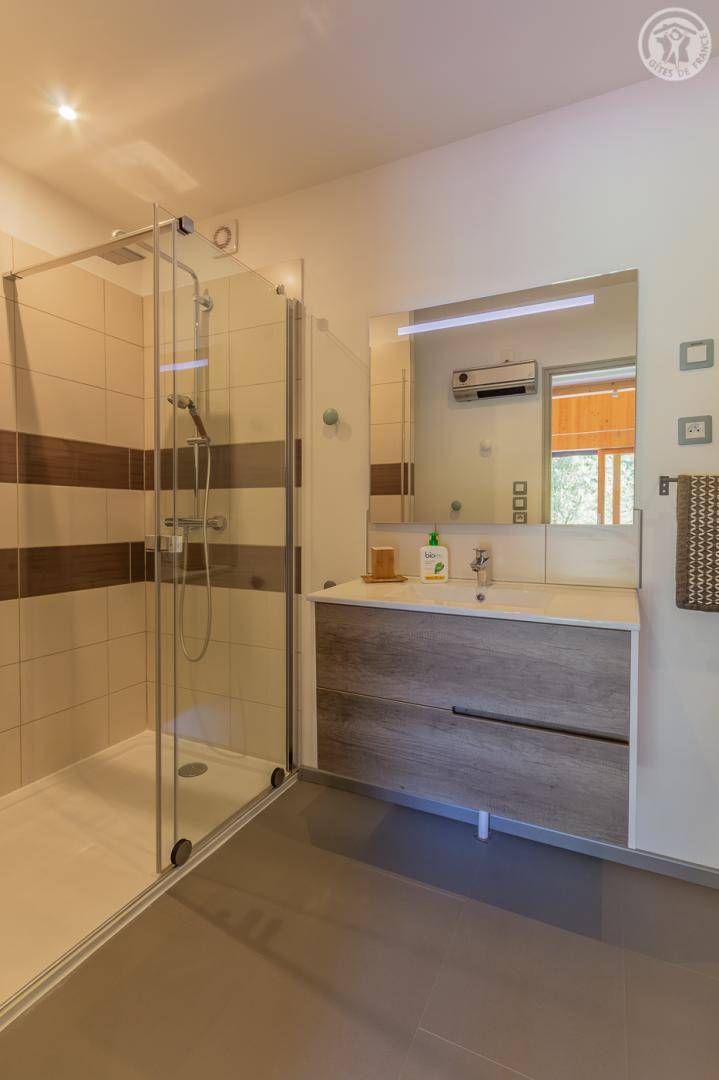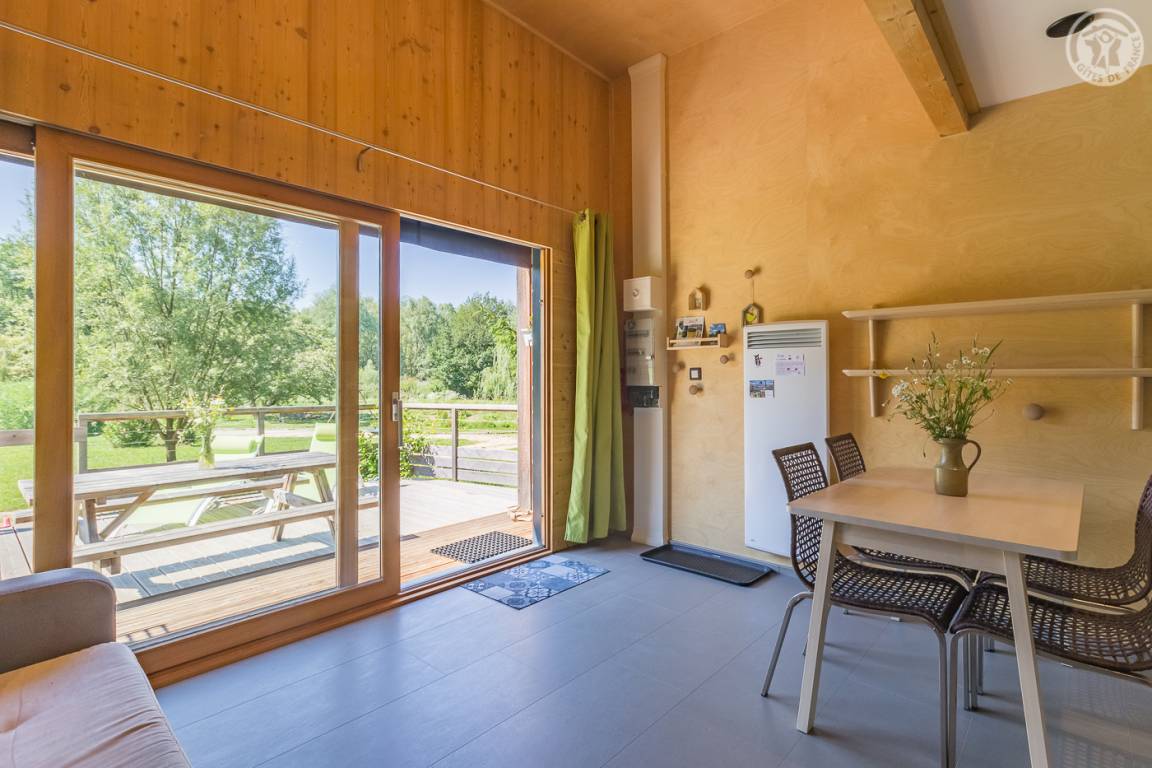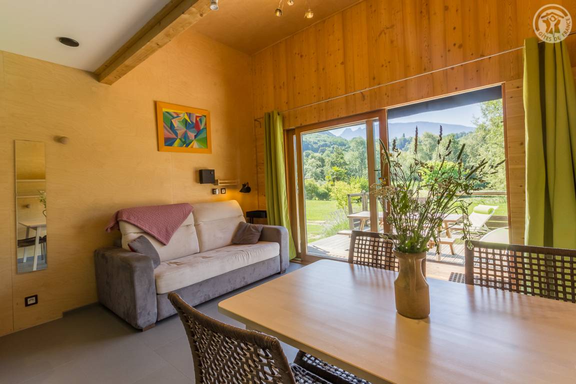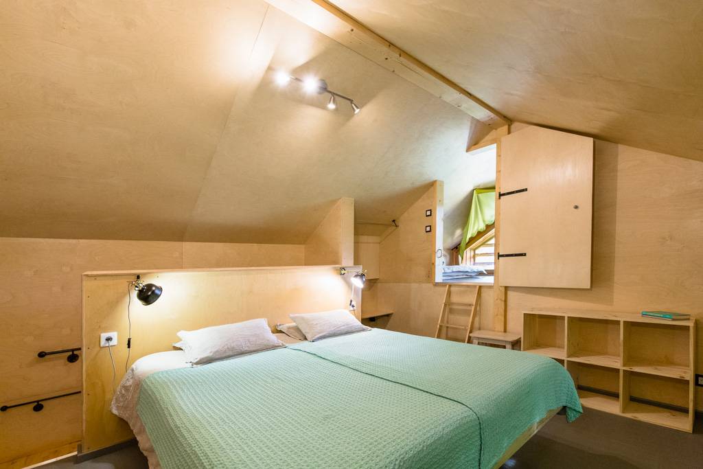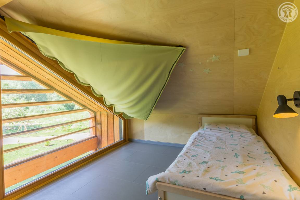 Individuelle Chalet-Hütte auf 2 Ebenen inklusive Wohnküche (Bluetooth-Lautsprecher, Safe), Badezimmer mit WC. Etage unter dem Dachgeschoss, 2 angrenzende Schlafzimmer: 1 Schlafzimmer im Zwischengeschoss (1 Doppelbett 160 x 200 cm) mit einem kleinen Schlafzimmer für Kinder, auf einer Unterkante von weniger als 1,80 m und über eine Leiter erreichbar (2 Betten für Kinder von 1,80 m). unter 8 Jahren: 70 x 140 cm / 70 x 160 cm). Gesamtfläche des Chalets: 42 m² inklusive Dachgeschossflächen. Private Terrasse. Gemeinsame Waschmaschine und Trockner.