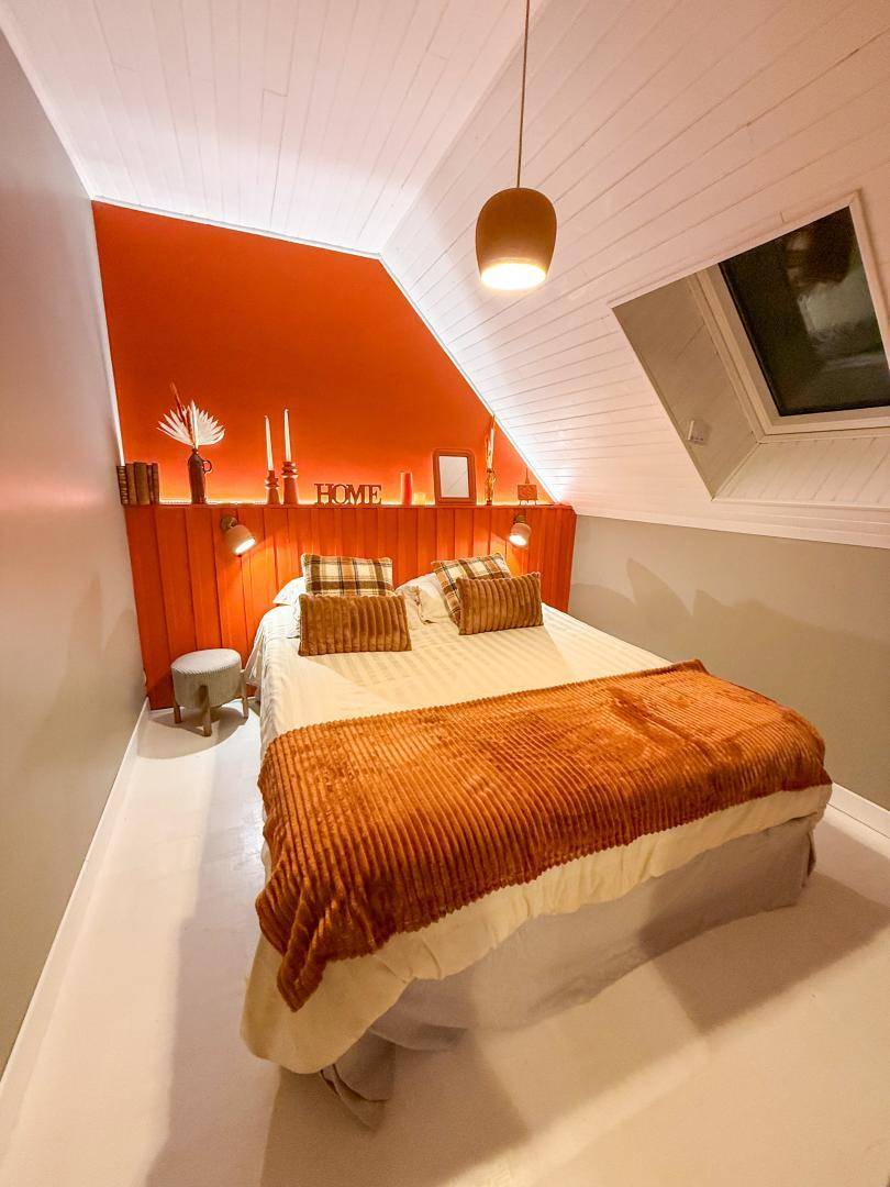 Ein Schlafzimmer mit einem 160 cm breiten Doppelbett