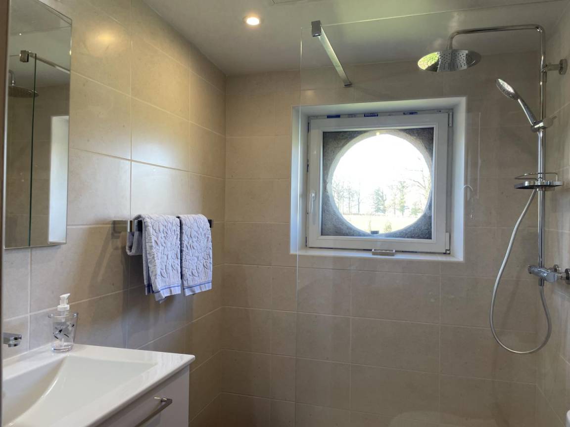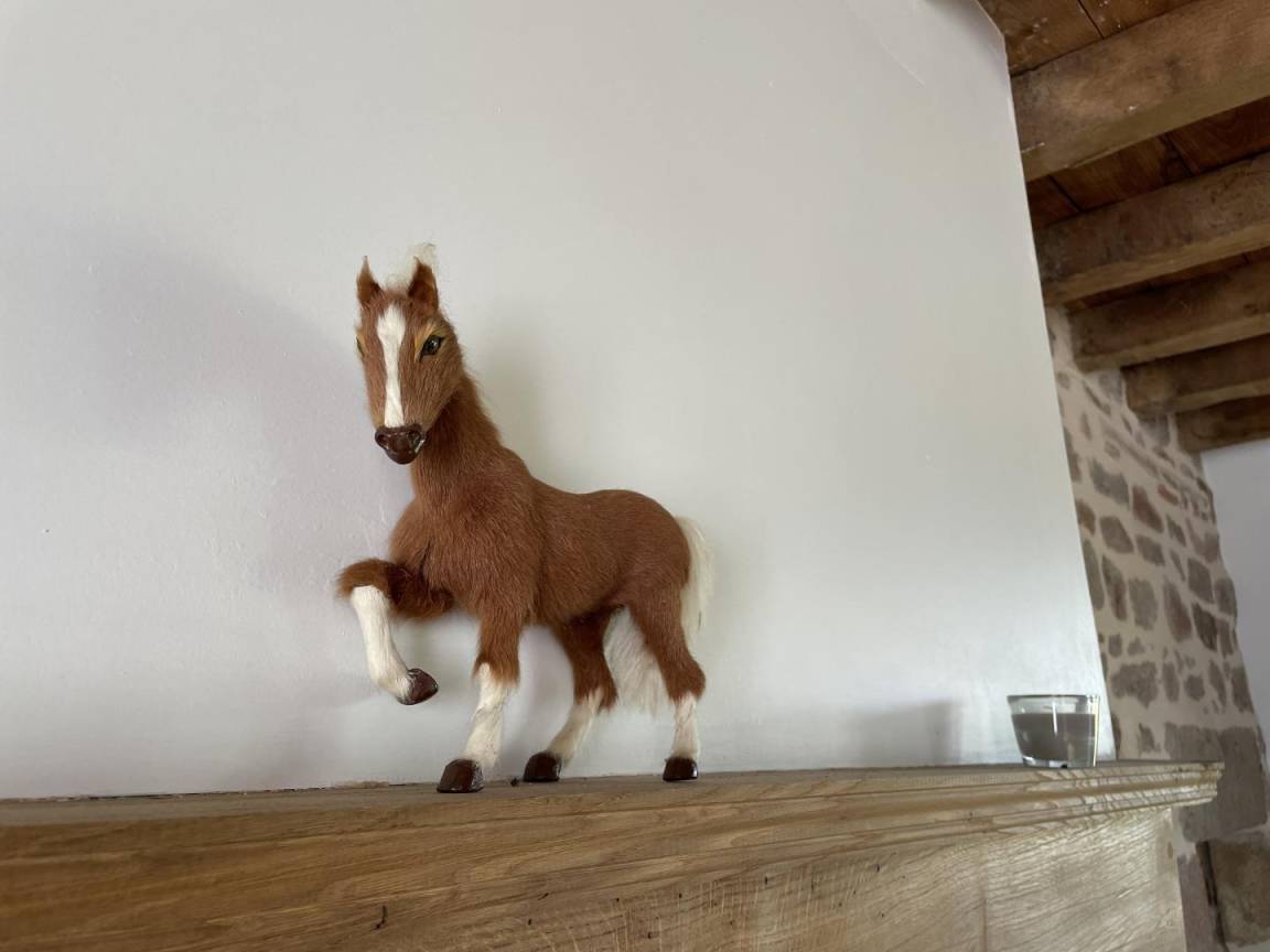 Erdgeschoss: Genießen Sie die voll ausgestattete Küche offen zum Wohnzimmer. 2 Erker bieten Ihnen einen atemberaubenden Ausblick, mit Blick auf die nahen Pferde. Zugang über eine Stufe zum Badezimmer (Dusche und Toilette) durch eine alte Tür voller Charme. Heizung ist elektrisch. Der Pelletofen im Wohnzimmer ist ein echtes Plus. Es bringt Ihnen Wärme und Komfort während Ihres Wiedersehens. Das Klavier wird Jung und Alt gleichermaßen begeistern, erwecken Sie die Künstlerseele in Ihnen!