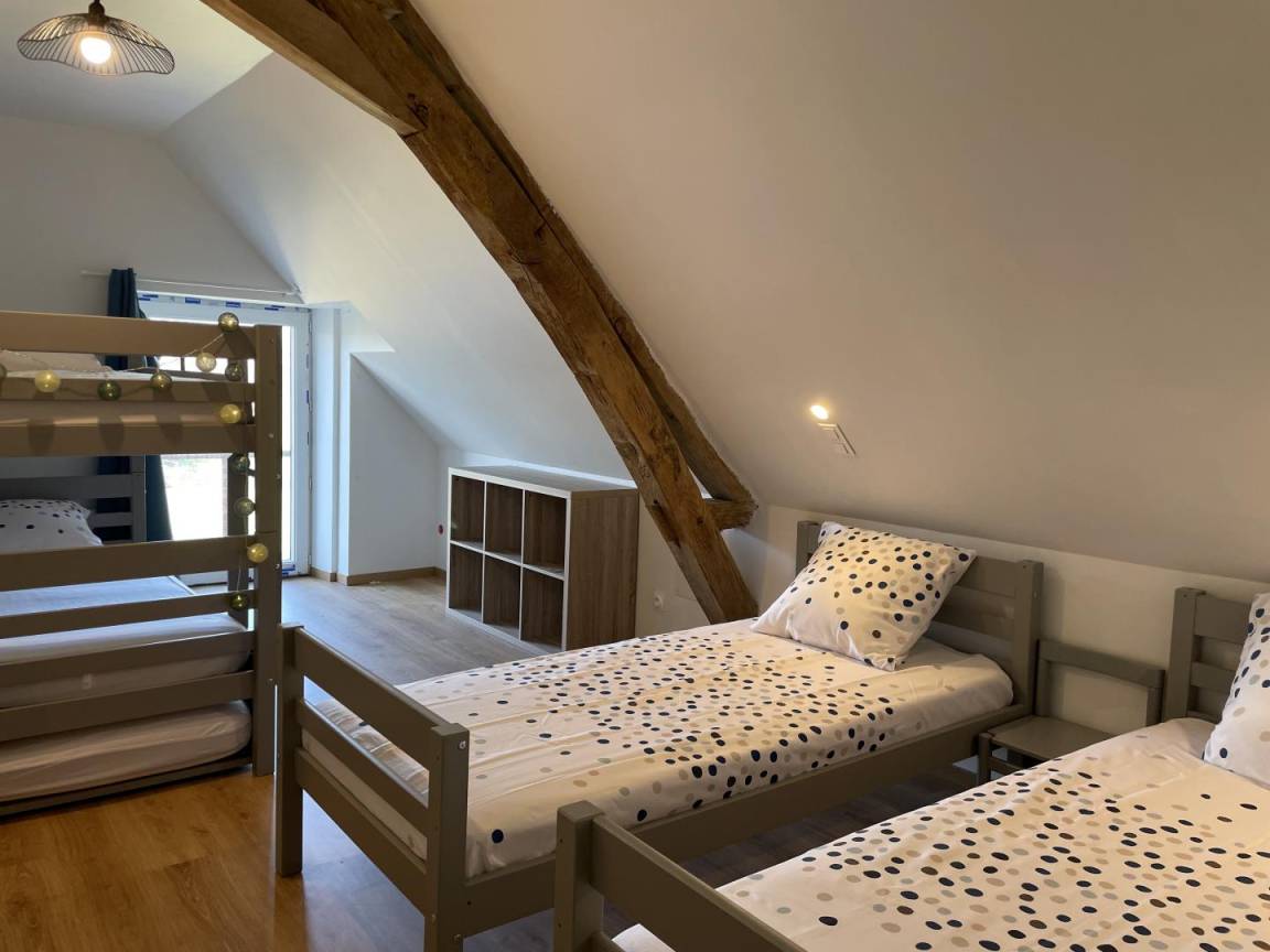 Je einem Bett für 2 Personen (140x200cm), 1 Schlafzimmer mit. 4 Betten für 1 Person (90 x 200 cm), darunter 2 Etagenbetten, ein Badezimmer (Dusche und WC).
