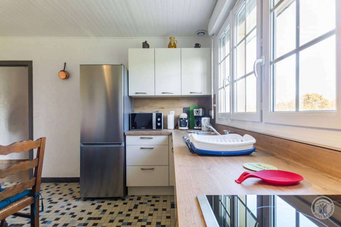 Freistehendes Haus komplett ebenerdig. Wohnzimmer mit Pelletofen (TV, WLAN). Küche (Backofen, Induktionskochfeld, Geschirrspüler, Kühlschrank mit Gefrierfach, Mikrowelle, Tassimo-Espressomaschine, Kaffeemaschine). Hintere Küche mit Waschküche (Waschmaschine). Separates WC. Duschraum (Föhn). Schlafzimmer 1 (1 Bett 160x200) mit Schreibtisch, Schlafzimmer 2 (2 Betten 90x190), Schlafzimmer 3 (1 Bett 140x190). Babyausstattung auf Anfrage. Bettwäsche wird gestellt und die Betten sind bei Ankunft bezogen. Reinigungsservice gegen Aufpreis. Elektroheizung (PAC) gegen Aufpreis. Privates, eingezäuntes Grundstück. Terrasse. Gartenmöbel, Grill, Liegestühle. Parkplatz. Schnellladestation (15 Min.) für Elektroautos in 1 km Entfernung.