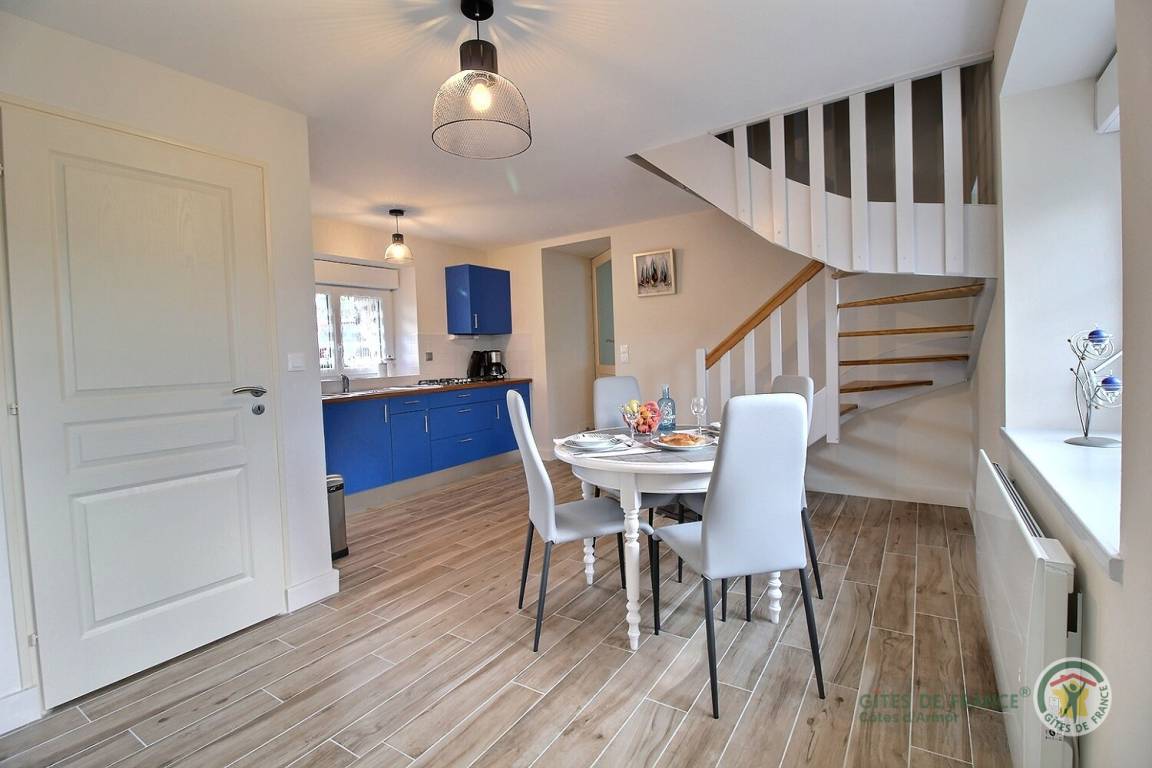 Ihre Ferienwohnung beinhaltet im Erdgeschoss: Einbauküche, Wohnzimmer, Wohnzimmer, WC. Obergeschoss: 1 Schlafzimmer (1 Doppelbett 140x190), ein Badezimmer mit Dusche und WC. Zu Ihrer Verfügung: private Terrasse und Grundstück von 150 m². Parken Sie Ihr Fahrzeug im Hof. Unterstand für Fahrräder vorhanden. Waschmaschine befindet sich in der Waschküche, die mit dem Eigentümer geteilt wird.