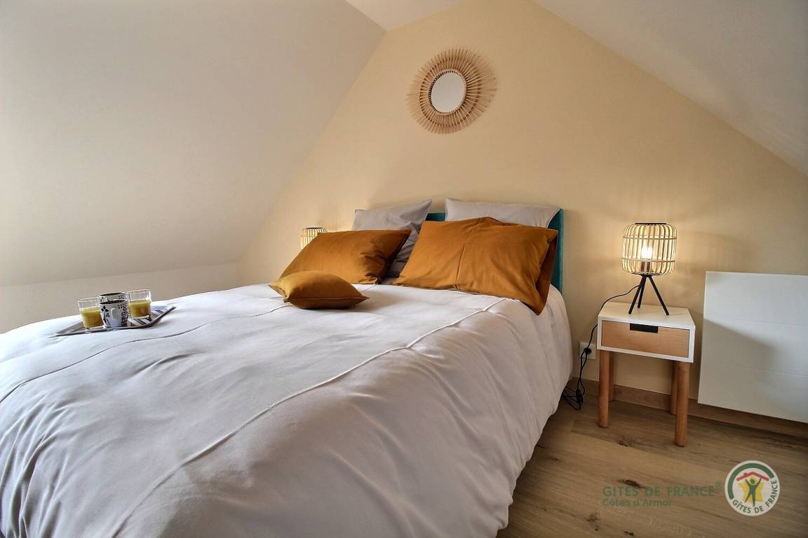 „Les propriétaires sont accueillants, présents tout en restant discrets. Ils donnent de bonnes indications pour découvrir les environs. L'environnement du gîte est agréable et bien entretenu. Le gîte est très propre et soigné. Il est très bien équipéet decoré avec goût. Il est idéal pour un couple. Il est bien situé pour rayonner dans les côtes d'Armor. C'est une bonne adresse à garder précieusement et à partager. Nous avons l'habitude de louer des gîtes, il est de loin celui qui prend la 1 ère place.“