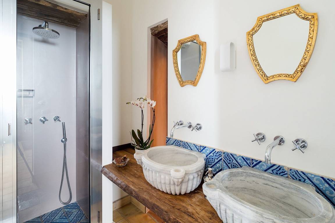 Die Villa umfasst 5 Schlafzimmer und 6 Bäder und bietet Platz für bis zu 10 Gäste auf mehreren Geschossen. Die Raumaufteilung verbindet Wohn-, Ess- und Schlafbereiche in einem fließenden Grundriss. Jedes Schlafzimmer ist großzügig geschnitten und mit sorgfältig ausgewählten Möbeln und Bettenkonfigurationen ausgestattet, die verschiedene Gästekombinationen von Paaren bis zu größeren Familiengruppen ermöglichen. Die 6 Bäder sind über die gesamte Immobilie verteilt und mit hochwertigen Einrichtungen ausgestattet.