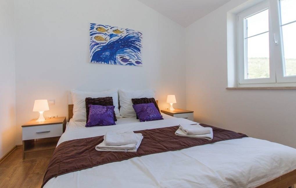 Diese Haushälfte bietet einen atemberaubenden Panoramablick auf das Meer und die umliegenden Inseln vom Pool. Von der anderen Seite des Hauses ist eine schöne Aussicht zum Nationalpark Ucka. Die Unterkunft befindet sich in Zagore und besteht aus zwei getrennten, kompletten Wohnungen, die durch Außentreppen verbunden sind. Sie ist ideal für einen komfortablen Familienurlaub oder Urlaub mit Freunden geeignet. Die Lage bietet sich als guter Ausgangspunkt, um schnell zum Fährhafen zu gelangen um die umliegenden Inseln zu besichtigen oder die Badeorte wie Moscenicka Draga, Opatija, Lovran, Rijeka und Labin in der Nähe zu erkunden. Golfplatz in ca. 1 km Entfernung. Entspannende Momente bieten ein gemeinsamer Pool, NUR IN DEN MONATEN APRIL BIS SEPTEMBER und das Sonnendeck. Eigentümer wohnt auf dem Grundstück.