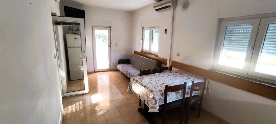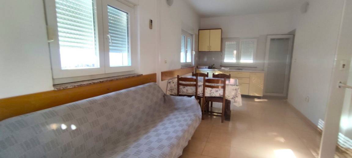 Wohnküche: gut ausgestattete Küche, Esstisch, Kühlschrank, Tiefkühler, Sofa bed, WiFi Internet, Klimaanlage, Ausgang auf den Garten.