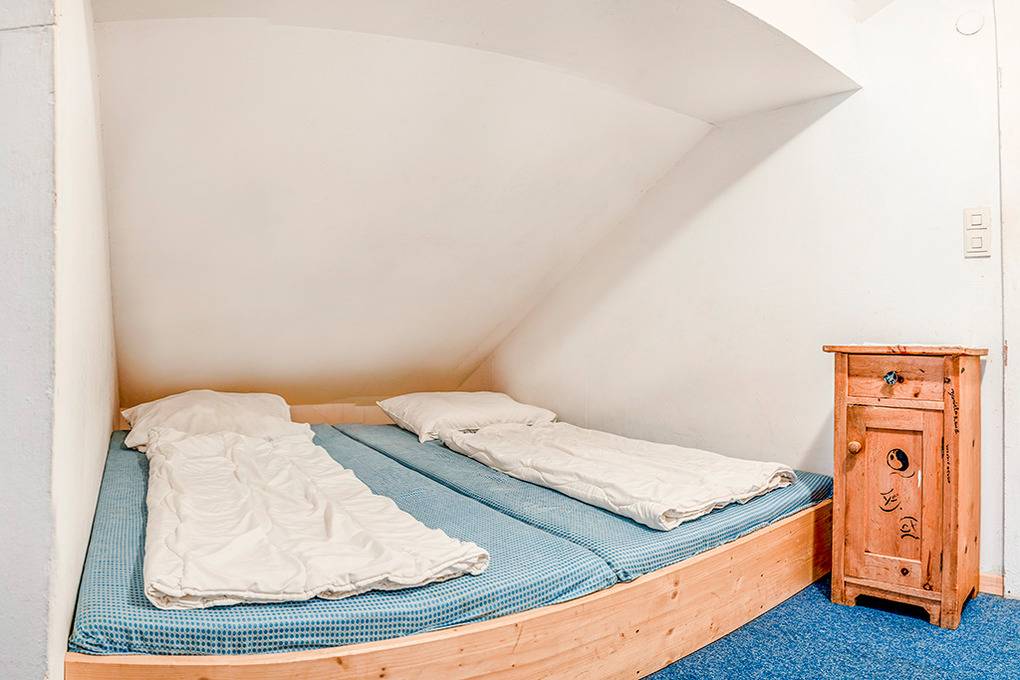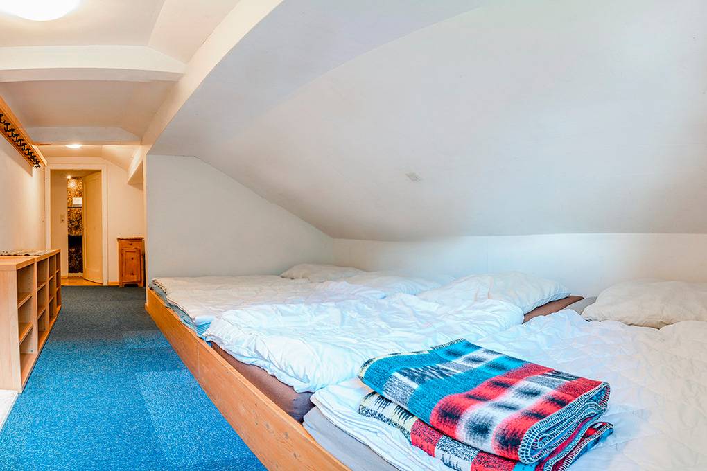2. Etage (leichte Dachschräge): 5-Bettzimmer mit Matratzenlager. 6-Bettzimmer mit Matratzenlager. Waschraum mit 3 Waschstellen. Separates WC.