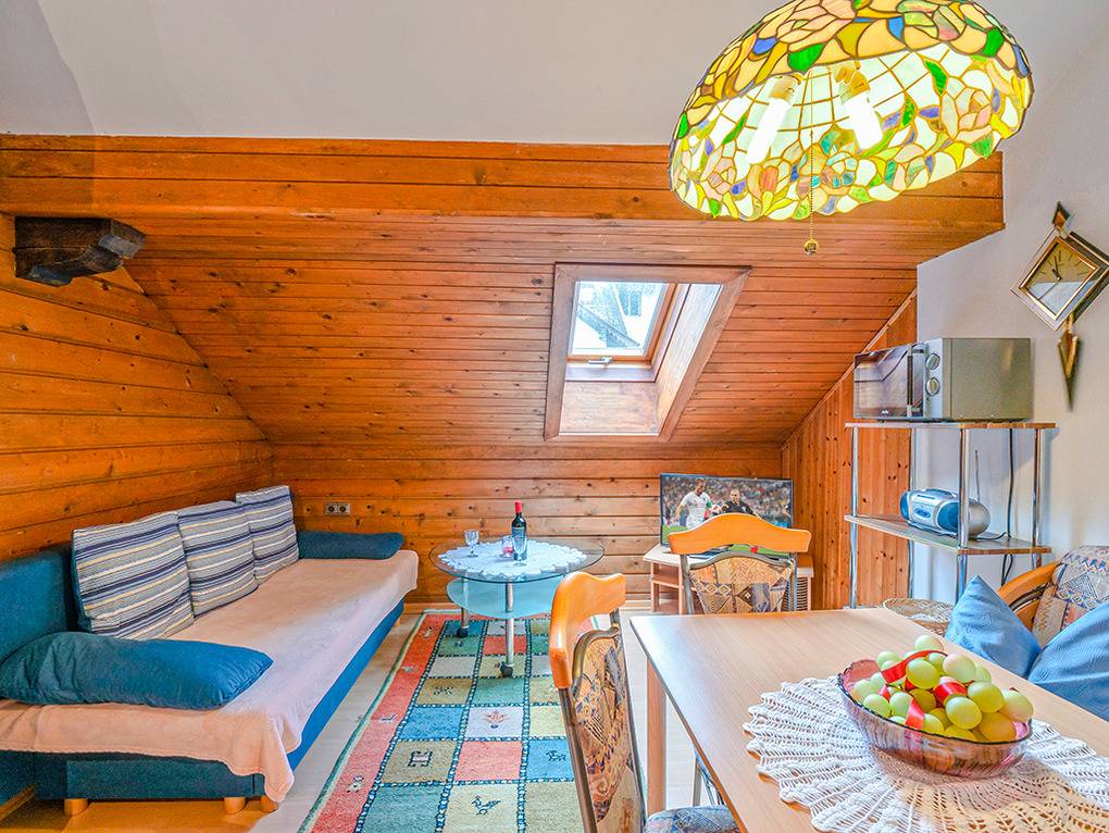 A 260.15 Wohnung 2 Pers.: 2-Zimmerwohnung mit 55 qm Wohnfläche, 3. Etage (leichte Dachschräge). Gemütliche Wohnküche mit Esstisch, Küchenzeile (4 Pl. E-Herd, Backofen, Mikrowelle). Kleiner Fernsehraum mit Sitzgarnitur, Kabel-TV. Doppelzimmer. Bad: Bw/Handdusche, Wb, WC.