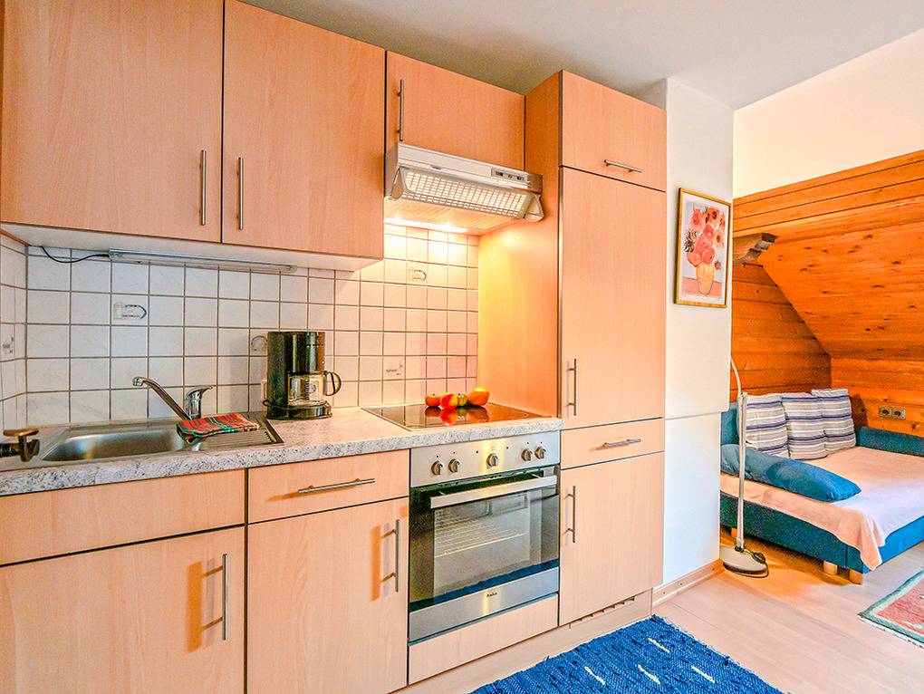A 260.15 Wohnung 2 Pers.: 2-Zimmerwohnung mit 55 qm Wohnfläche, 3. Etage (leichte Dachschräge). Gemütliche Wohnküche mit Esstisch, Küchenzeile (4 Pl. E-Herd, Backofen, Mikrowelle). Kleiner Fernsehraum mit Sitzgarnitur, Kabel-TV. Doppelzimmer. Bad: Bw/Handdusche, Wb, WC.