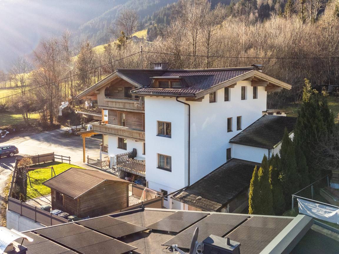 Hausbeschreibung : Etwas ausserhalb von Zell am Ziller am Fuße des sonnigen Zellbergs befindet sich dieses großzügige Apartment im Tiroler Landhausstil eingerichtet, Platz für die ganze Familie. Geräumige Wohnküche, insgesamt 4 Schlafzimmer, 2 jeweils mit Ausziehsofa und ein großes Badezimmer mit walk-in Dusche und Wanne/Dusche, 2 WC. Gartenhäuschen mit Grillmöglichkeit. Eingebettet in Wiesen und Felder unweit des Waldes finden Sie hier eine Oase der Ruhe. Der Skibus kommt auf Anfrage direkt zum Haus