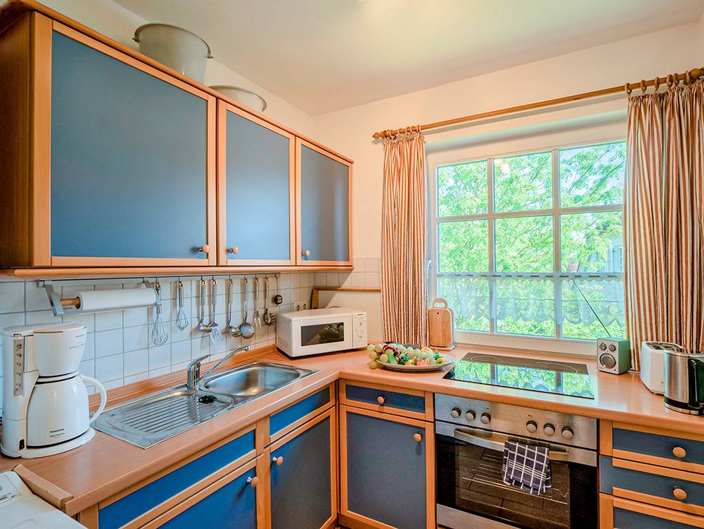 D 21.18 Wohnung 2-3 Pers.: Schöne, helle 2-Zimmer-Eck-Wohnung mit 45 qm Wohnfläche, 1. Etage. Wohn-/Essraum, Couchgarnitur (Ausziehcouch 1 Pers.), Sat-TV, Internetradio, grosser Esstisch. Separate Küche (4 E-Platten Ceranfeld, Backofen, Mikrowelle). 3-Bettzimmer mit Doppelbett, Ausziehcouch (1 Pers.). Bad/WC. Hochstuhl, Kinderbett. Waschmaschine. Balkon mit Sitzmöbeln, Blick aufs Achterwasser.