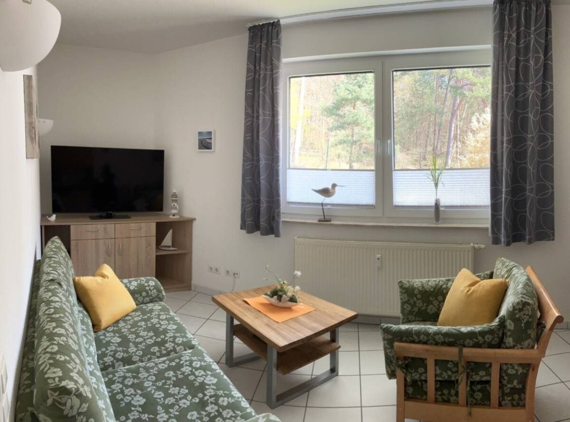 Wohnraum mit 55 Zoll-TV und UKW/DAB/Internet Radio