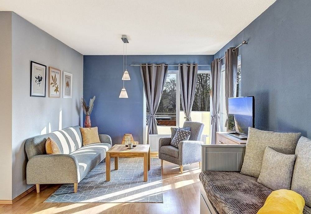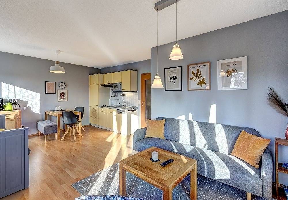 Im großen Wohnzimmer (mit einem ausziehbaren Hemnes-Bett 200 x 180 cm) und im Essbereich sind ausreichend Sitzgelegenheiten vorhanden, um, um das in der voll ausgestatteten Küchenzeile (Backofen, Kochfelder, Spülmaschine, Spüle, Mikrowelle, Toaster, Mixer, Kaffeemaschine) zubereitete Essen zu sich zu nehmen. Auf dem großzügig geschnittenen Balkon haben Sie ausreichend Platz, um es sich am Tisch mit vier Stühlen gemütlich zu machen. Eine entspannte Atmosphäre gepaart mit moderner Technik, WLAN und Digital-TV runden Ihren Aufenthalt in der Ferienwohnung Hannenüter ab.