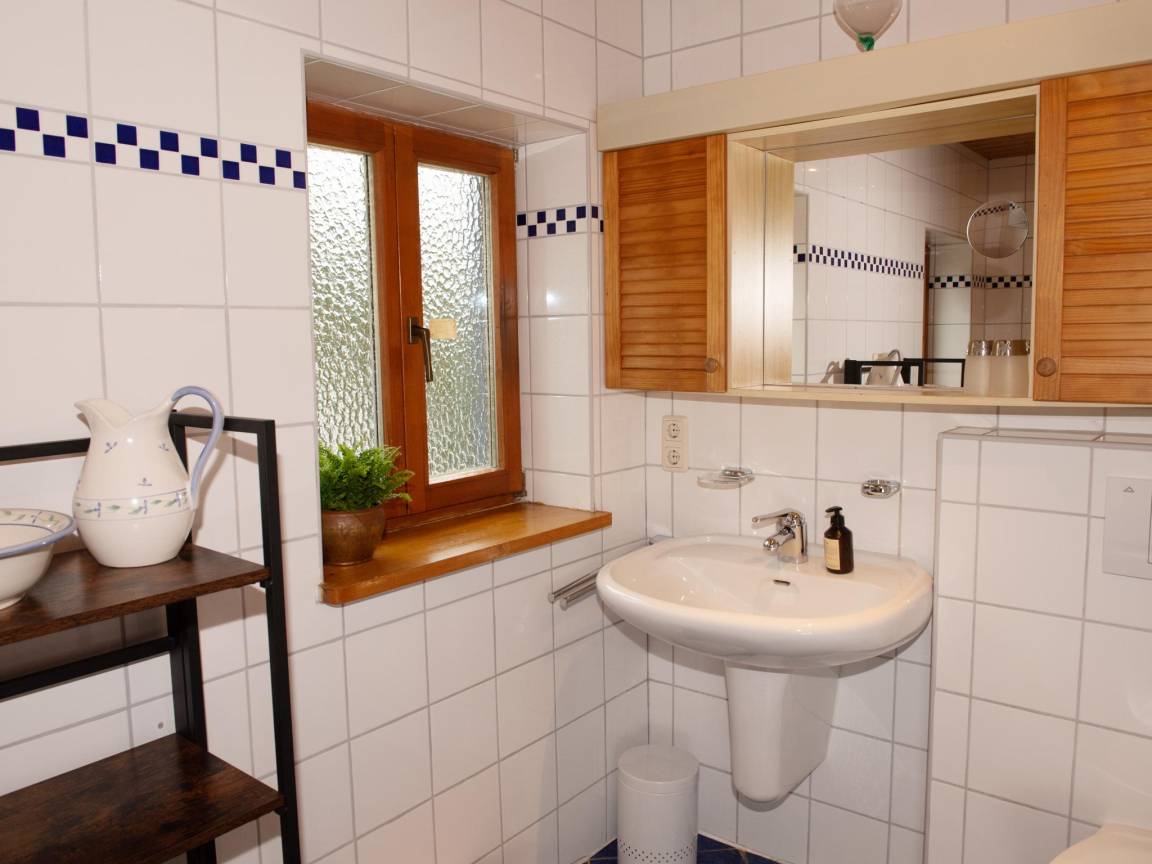In der 1. Etage: Schlafzimmer mit Doppelbett(200 x 200 cm), 1x Kinderbett (ohne Bettwäsche) , Schlafzimmer mit Einzelbett(90 x 200 cm), Doppelbett(180 x 200 cm), Waschbecken , Schlafzimmer mit Einzelbett(90 x 200 cm), Einzelbett(90 x 200 cm) , Badezimmer mit Dusche, Waschbecken, Toilette, Föhn , Flur