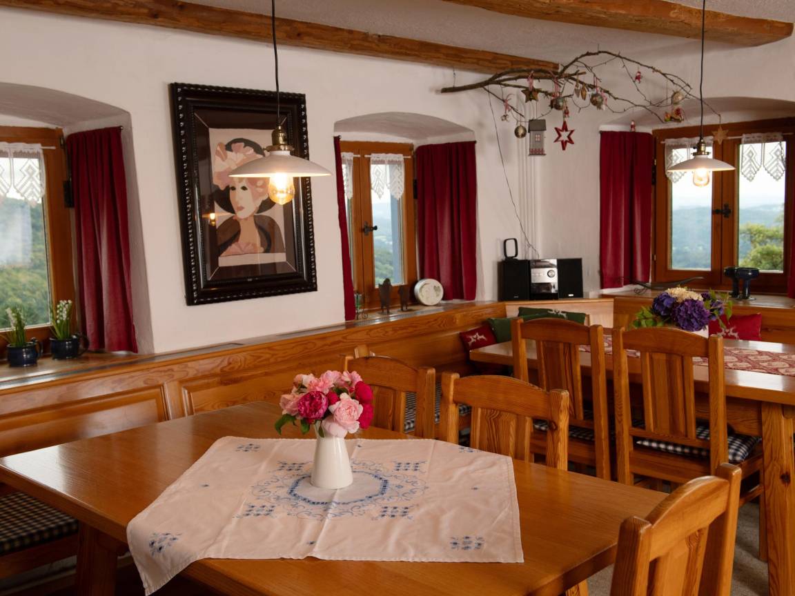 Hausbeschreibung : Dieses gemütliche Ferienhaus am Ortsrand von Zenting im Bayerischen Wald lädt zu einer entspannten Auszeit inmitten der Natur ein. Die Einrichtung aus Holz sorgt für eine warme, einladende Atmosphäre. Genießen Sie sonnige Stunden im Garten oder auf der Terrasse – ideal zum Abschalten nach einem aktiven Tag. Es erwartet Sie eine einzigartige Aussicht. Wanderwege und Natur beginnen direkt vor der Haustür. Dieses Haus bietet den perfekten Rahmen für erholsame Tage
