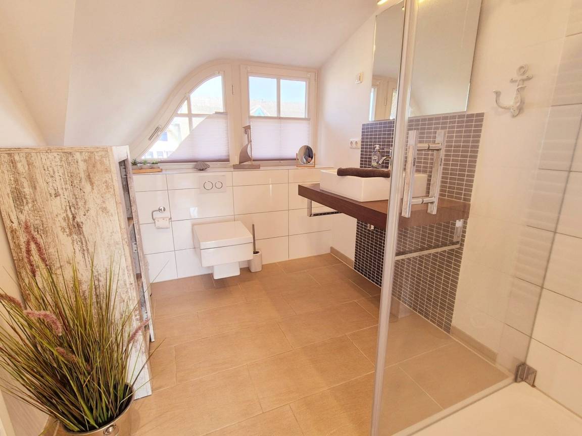 Im oberen Bereich stehen Ihnen zwei Schlafzimmer mit je einem Boxspringbett und Kommoden zur Verfügung. Ein 2. TV ist in einem Schlafzimmer vorhanden. Das Duschbad mit Echtglasduschabtrennung, Waschbecken und WC ist in der typischen Fledermausgaube des Reethauses eingerichtet. Im gesamten Haus ist eine Fußbodenheizung verlegt. Zum Sichtschutz sind Pliesses, Vorhänge und Fensterklappläden angebracht. Ein Waschmaschine und Trockner und diverse Putzutensilien sowie Bügelbrett und Bügeleisen sind im HWR verstaut. Im Garten zur Südseite können Sie es sich auf den Gartenmöbel bequem machen und Blicke über die Wiesen und Felder Ihre Blicken schweifen lassen. Ein Sonnenschirm ist vorhanden. Zusätzlich ist ein Strandkorb und Loungemöbel zum Entspannen im Garten vorhanden. Zum Grillen steht Ihnen ein Elektrogrill von Weber zur Verfügung. Zum Naturstrand sind es ca. 500 m. Hier sind Hunde erlaubt. Zwei Stellplätze befinden sich direkt am Ferienhaus.