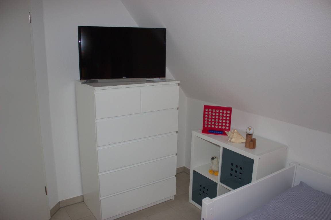 Im ersten Schlafzimmer mit Seeblick - steht ein Doppelbett und Kleiderschrank. Hier haben Sie platz für das Kinderreisebett. Die anderen zwei Schlafzimmer sind identisch mit einem ausziehbaren Bett (Einzelbett mit Ausziehfunktion) eingerichtet.