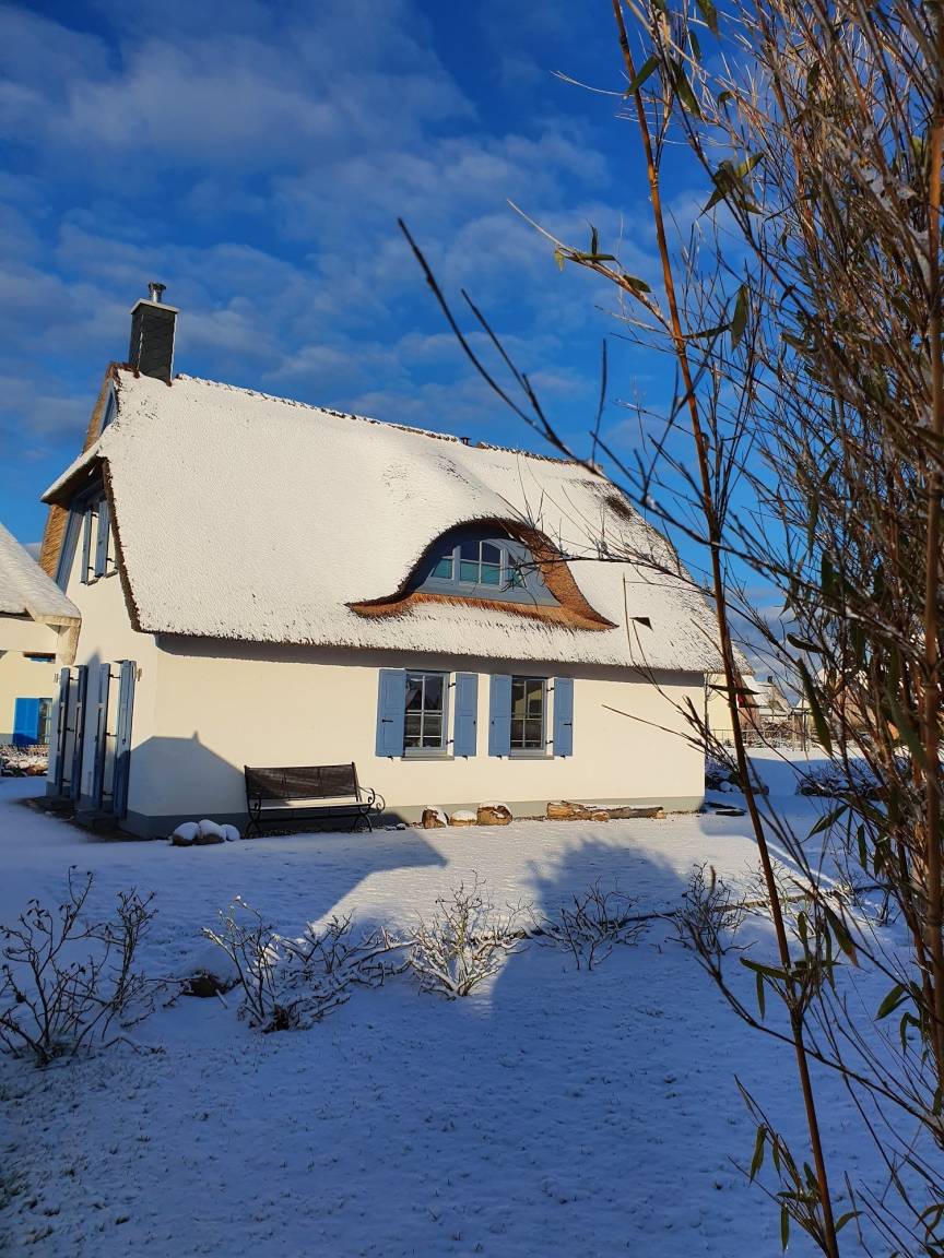 Im gesamten Haus ist durch die Fußbodenheizung, dem Reetdach und dem Kamin immer ein angenehmes Raumklima.