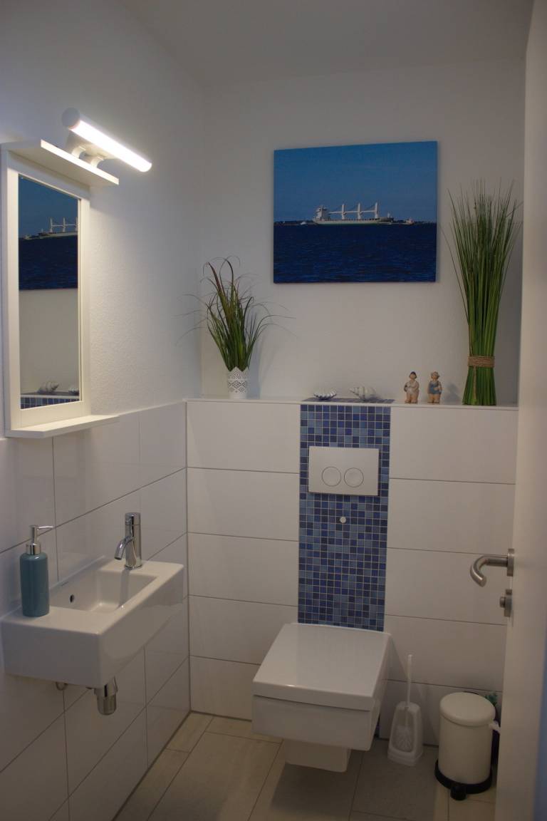Die Wellnessdusche mit Sauna im Erdgeschoss und das Gäste-WC mit Tageslicht sowie der Hauswirtschaftsraum mit Waschmaschine runden das Erdgeschoss ab.