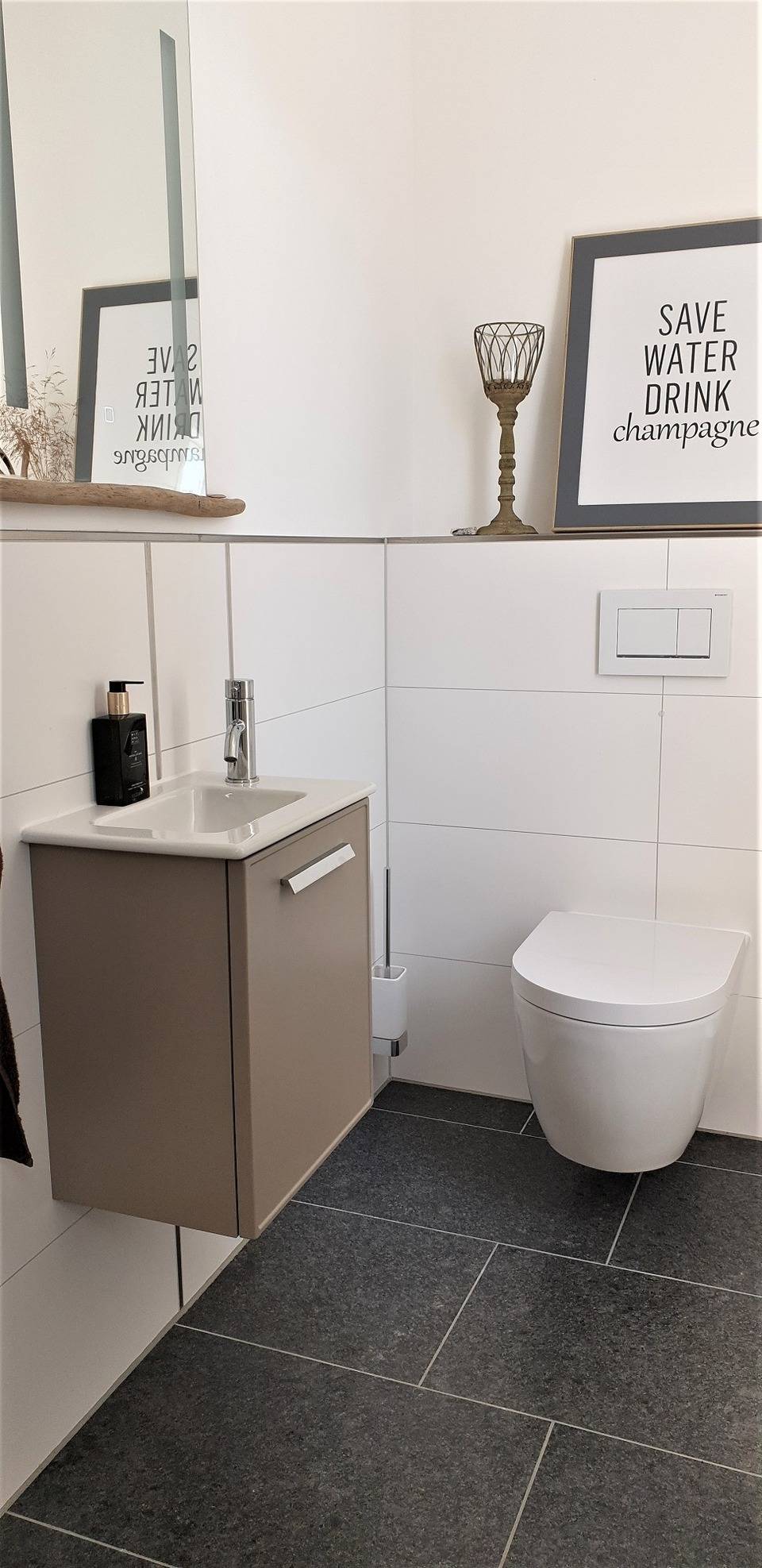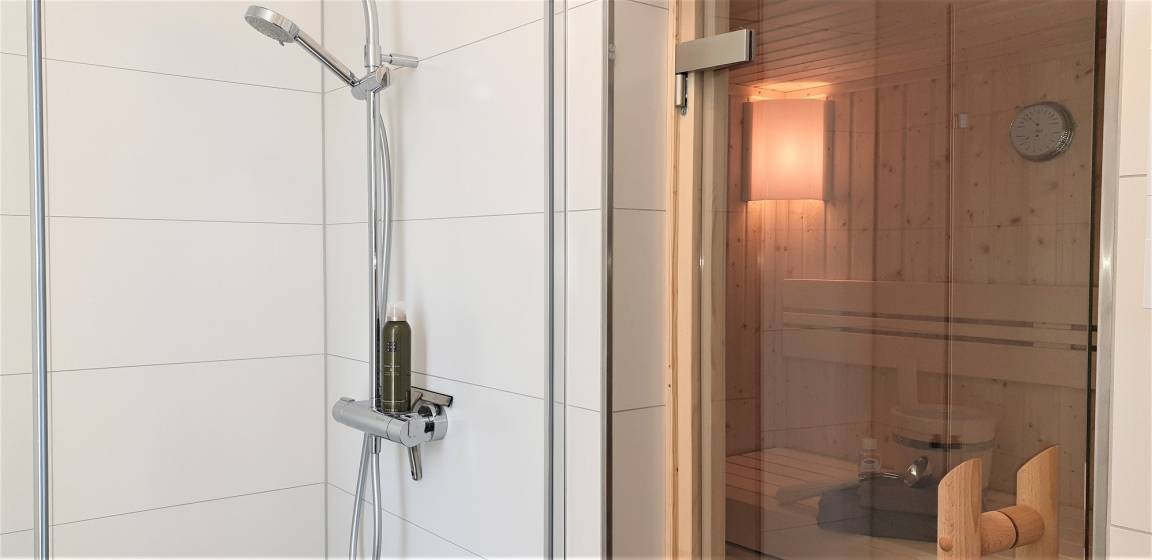 Das Erdgeschoss ist das Herz des Hauses. Von einer großen Küchenzeile, einer romantischen Couchecke vor dem Kamin bis hin zu einem großen Esstisch für 6 Personen, steht euch alles was das Herz begehrt zur Verfügung. Egal ob Kochabende, Gesellschaftsspiele (eine Auswahl an eigenen Favoriten vorhanden) oder einfach ein Wein vor dem Kamin, alles was uns glücklich macht, soll auch euch glücklich machen. Damit ihr auch im Winter warme Füße habt und nicht friert, ist im ganzen Haus eine Fußbodenheizung installiert. Im Hauswirtschaftsraum steht euch eine Waschmaschine, Wäschetrockner, Staubsauger, Bügelbrett, Bügeleisen etc. zur Verfügung. Zudem findet ihr im Erdgeschoss ein Gäste-WC mit Tageslicht, sowie einen kleinen „Wellness-Bereich" mit Sauna und Regendusche.
