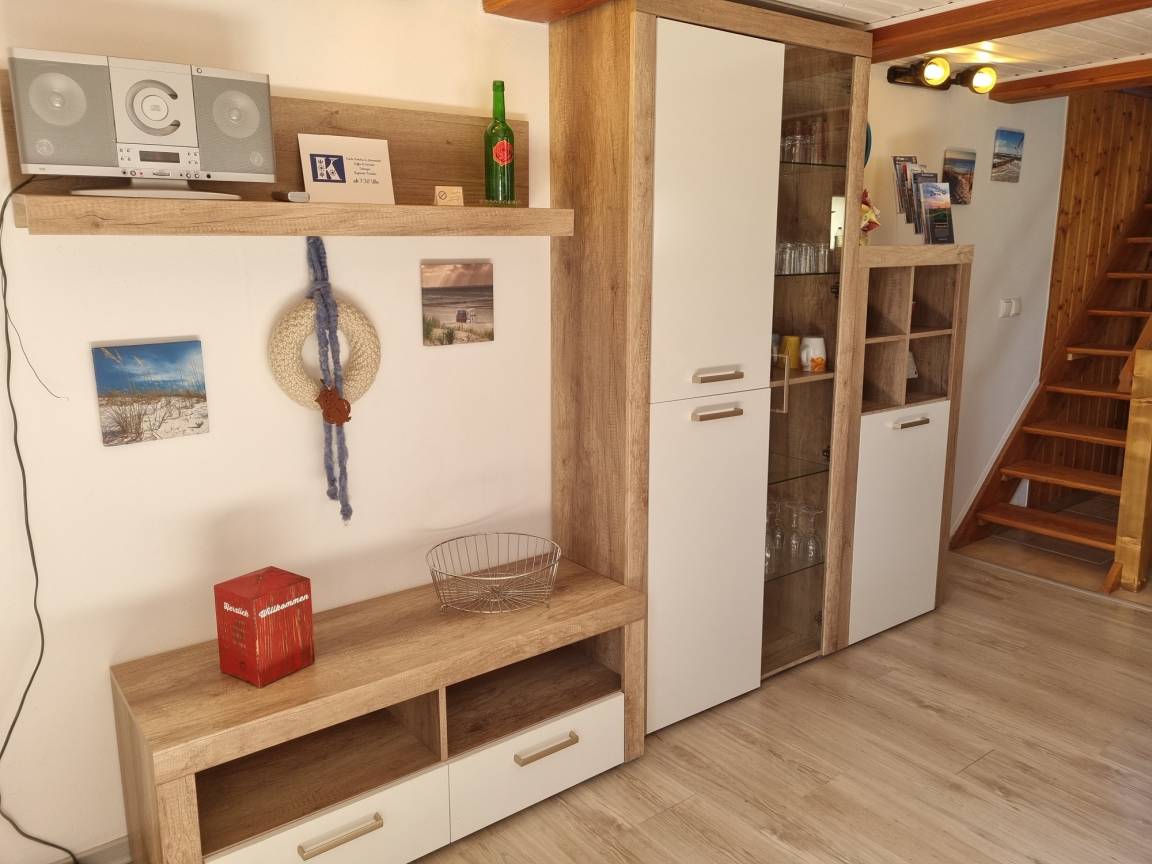 Das Ferienhaus ist erstrahlt von außen in neuer Holzfassade. Machen Sie es sich vor dem Häuschen oder hinten auf der Dachterrasse gemütlich und genießen Sie die Ostseeluft. Im Innern erwartet Sie eine gemütliche Küche. Im Erdgeschoss ist des Weiteren ein Schlafzimmer mit Doppelbett und das Duschbad.