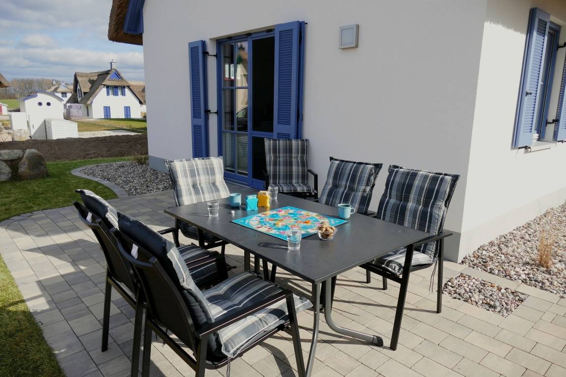 Der große Garten ist von einem Friesenwall mit Wildrosen umgeben. Schon morgens können Sie im Unterstand des Gartenhauses die ersten Sonnenstrahlen genießen. Der nach Südwesten ausgerichtete Garten lädt Sie zu vielen Aktivitäten und zum Entspannen ein. Ihre Fahrräder können Sie im Gartenhaus unterstellen. Über ein Gartentor können Sie den Garten des Nachbarhauses „dat huus" erreichen, so dass beide Häuser gemeinsam von befreundeten Familien genutzt werden können.