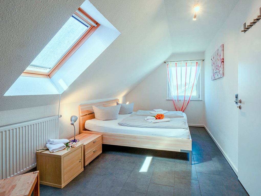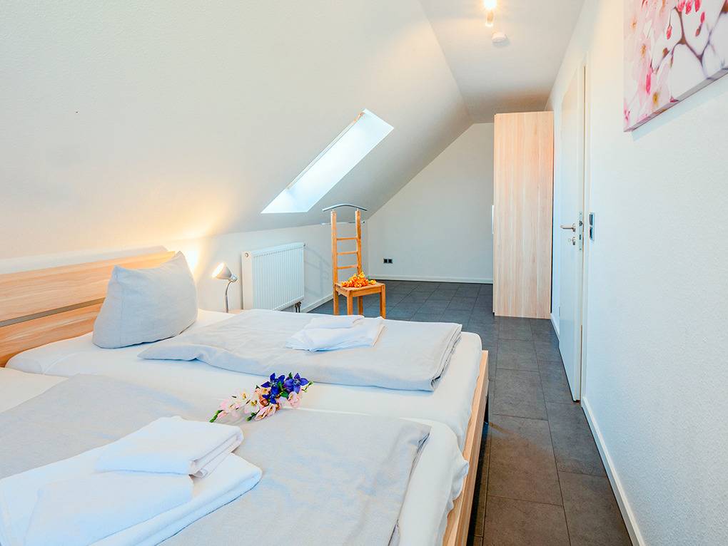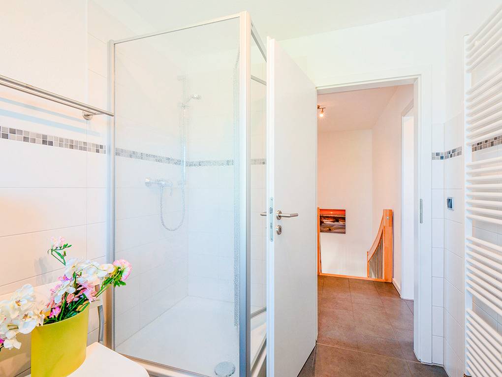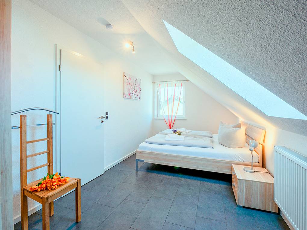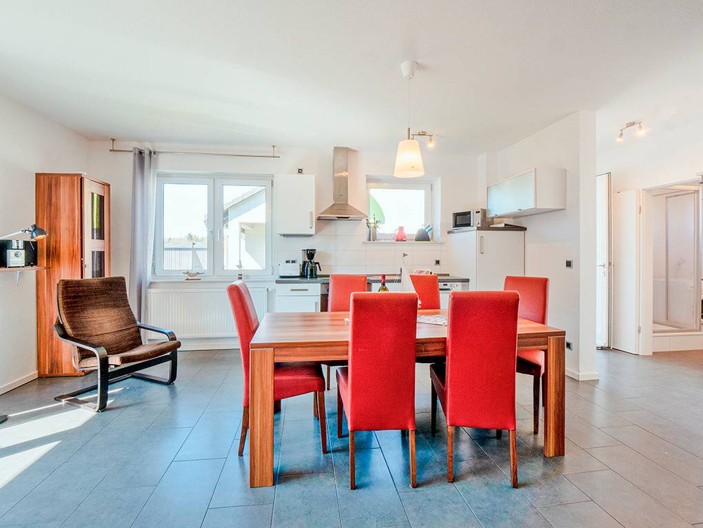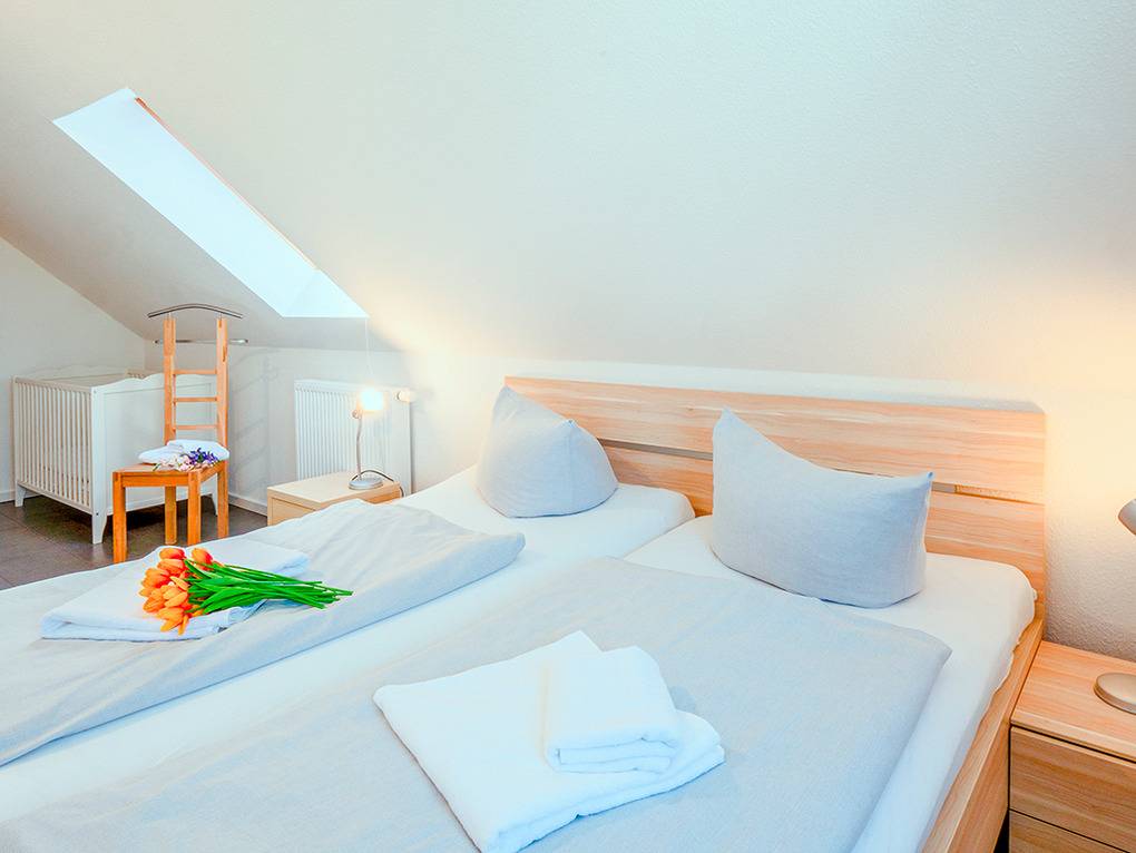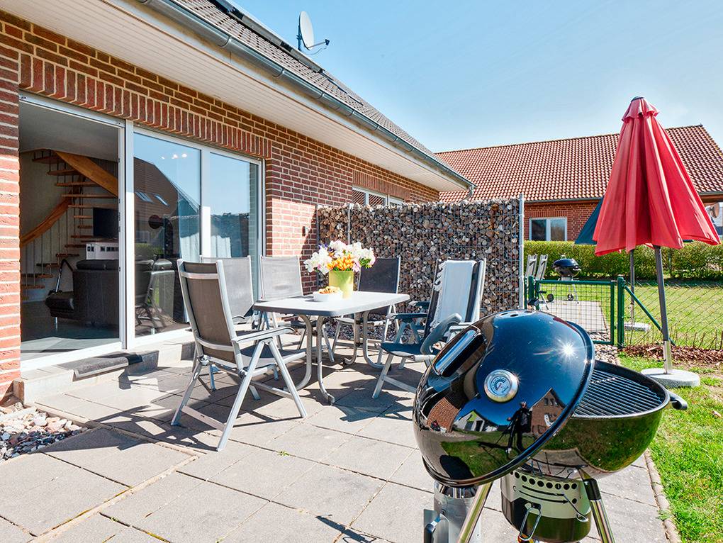 D 137.80 Ferienhaus 4-6 Pers.: 4-Zimmerhaushälfte mit 75 qm Wohnfläche über 2 Etagen. Parterre: Heller Wohn-/Essraum mit Sofasitzecke am Kaminofen, Sat-TV, Radio/CD, Esstisch, Einbauküche (Backofen, Mikrowelle, Spülmaschine). 2-Bettzimmer. Bad/WC. 1. Etage: Zwei Doppelzimmer. Bad/WC.