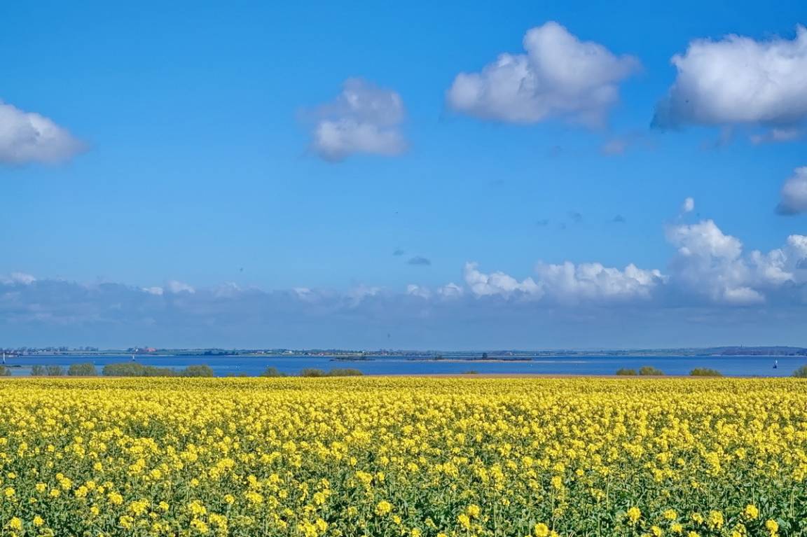 Vom rechten Schlafzimmer aus haben Sie einen wundervollen Blick über die Wiesen und Felder bis hin zur Ostsee. Es ist mit einem Doppelbett, 2. TV und zwei Kommoden ausgestattet.