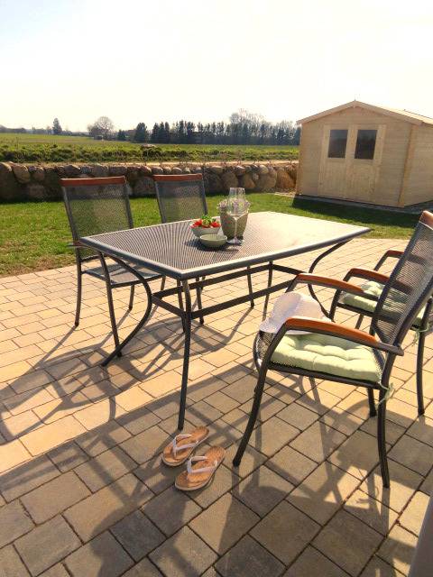 Der große Wohn- Essbereich mit dem gemütlichen Sofa lädt zum kuscheln ein. Vom Essbereich aus haben Sie Zugang zur Terrasse - hier können Sie Ihren Urlaubstag mit einem sonnigen Frühstück starten. Die Terrasse ist umläufig so dass Sonnenanbeter im Strandkorb auf Ihre Kosten kommen und auch abends die Sonne auf der Terrasse genossen werden kann.