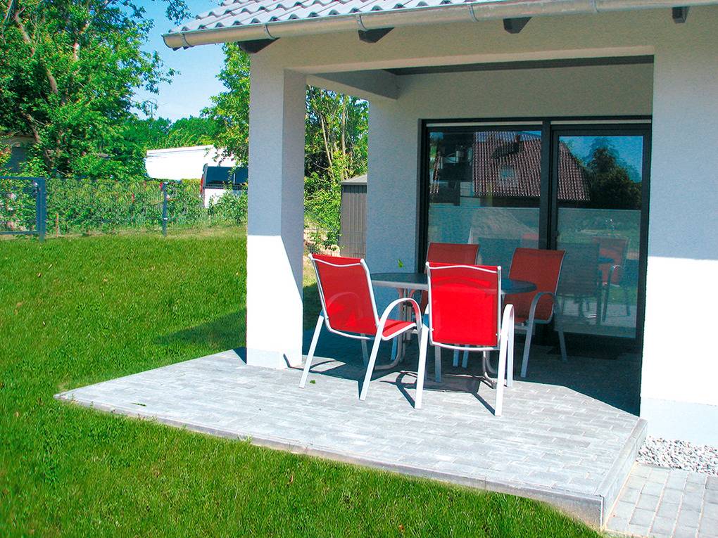 Haus: Schöne Doppelhaushälften mit moderner Ausstattung. E-Heizung. Nichtraucherhäuser. Überdachte Terrasse mit Gartenmöbeln. Eingezäunter Garten, ca. 100 qm pro Haushälfte. Gartenhaus für Räder (Gemeinschaftsnutzung beider Haushälften). 1 Pkw-Stellplatz pro Haushälfte.