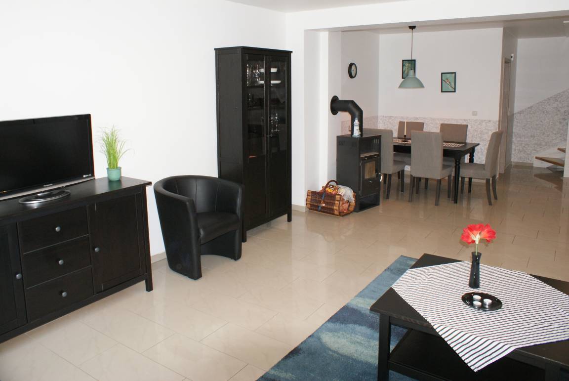 - Wohnzimmer mit Couch (mit Schlaffunktion für 2 Personen), TV, Radio, Essbereich für 4 Personen