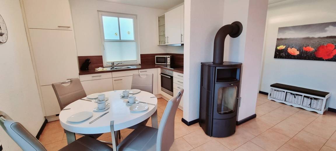 Besonders während der kühlen Jahreszeit wird Sie ein Kaminofen sowie der Komfort der im ganzen Haus verlegten Fußbodenheizung begeistern.