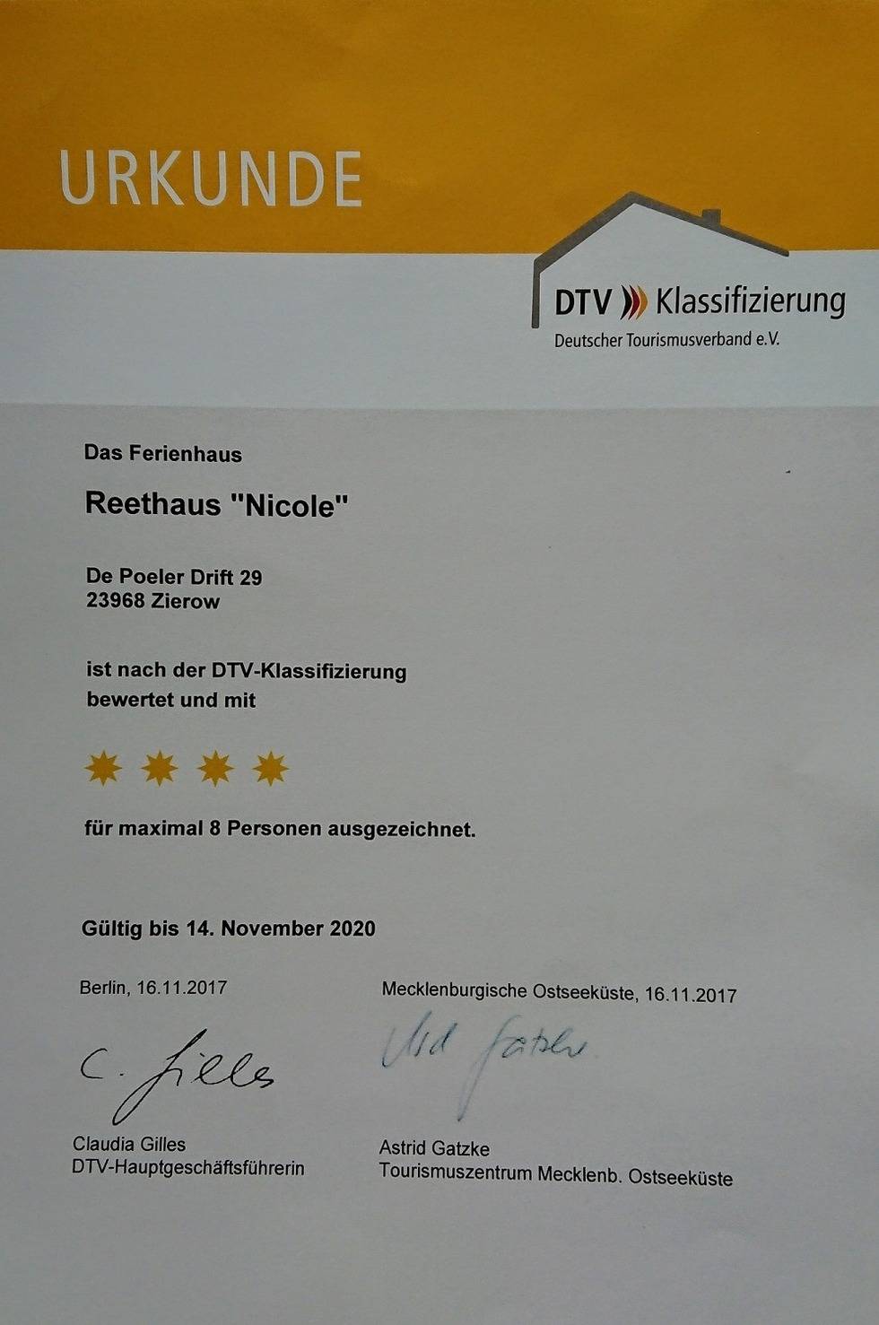 Im November 2017 erhielt es vom DTV eine ****Sterne Klassifizierung. Zum Naturstrand (Hundestrand) sind es nur 600 m. Der zweite Strandabschnitt ist ebenfalls gut zu Fuß zu erreichen und bietet mit einem Cafe, Minigolfanlage, Beachvolleyball und einem großen Spielplatz am Strand viel Vergnügen für Groß und Klein. Im großem Wohn- Essbereich sorgt ein Kamin für wohlige Wärme an kalten Tagen und Sie können es sich auf der Couch mit einem der zahlreichen Bücher oder Spiele gemütlich machen. Die Küchenzeile ist mit modernen Küchengeräten ausgestattet. Der große Esstisch bietet Platz für die ganze Familie. Auf Wunsch können Sie einen Hochstuhl dazu bestellen. Für die Vierbeiner stehen Fressnapf und zwei Hundekörbe zur Verfügung. Es liegen spezielle Decken bereit um die Einrichtung zu schonen. Entspannung finden Sie im großen Duschbad mit Sauna. In der mind. 4 Personen ausreichend Platz finden. Ein Aufguss steht bereit. Die Dusche ist bodengleich und verfügt über eine Wellnessbestrahlung. Das Gäste-WC und der Hauswirtschaftsraum mit Waschmaschine und Trockner runden das Erdgeschoss ab. Im Obergeschoss befinden sich die vier Schlafzimmer. Sie sind mit Vollholzmöbel hell eingerichtet.
