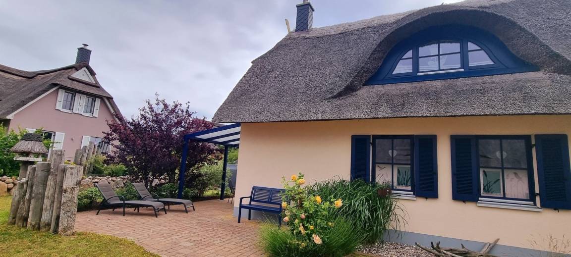 Das in 2016 errichtete Reetdachhaus "Kiek Inn" mit einer Wohnfläche von 97 qm befindet sich in der neuen Ferienhaussiedlung „De Poeler Drift" in Zierow.