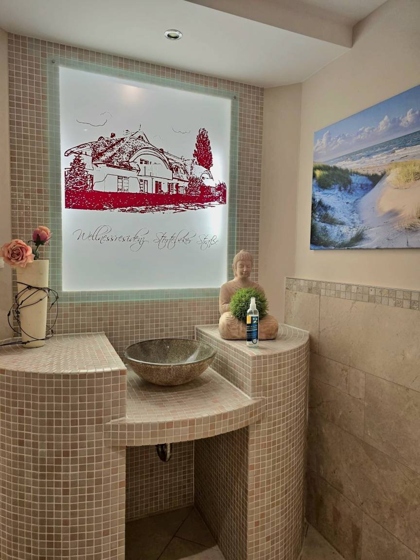 Ruhige Lage, ohne Verkehrslärm, PKW-Stellplatz direkt am Haus, Unterstellmöglichkeit für Fahrräder, toller Wellnessbereich