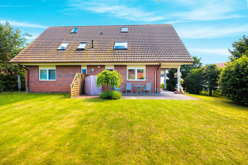 Haus: Schönes Ferienhaus mit 3 Ferienwohnungen. Alle Fewos mit moderner, ansprechender Möblierung. Kostenloser Internetanschluss über W-Lan. Zentralheizung. Nichtraucherwohnungen. Großer Garten mit Rasenfläche, Grillplatz zur gemeinschaftlichen Nutzung. 1 Pkw-Stellplatz/Fewo.